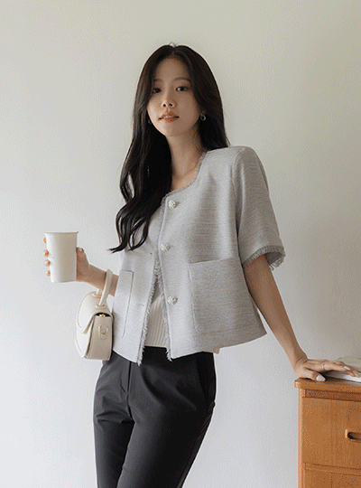 タッセル ツイード 後面バンド 半そで ジャケット