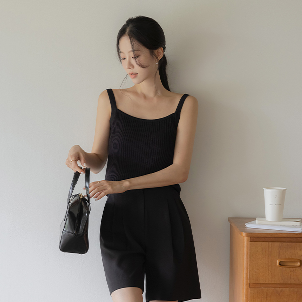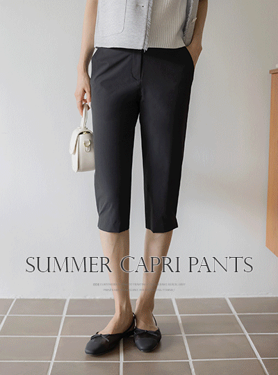 さらさら 弾力 裾上 スリット クロップド 카프리 パンツ