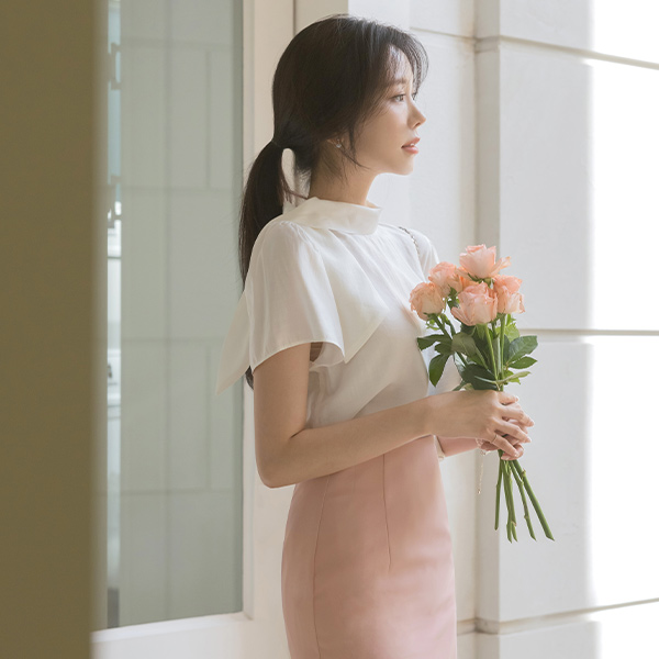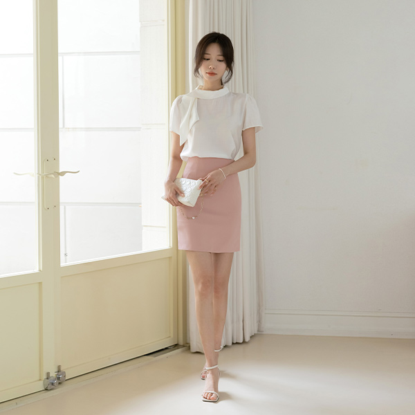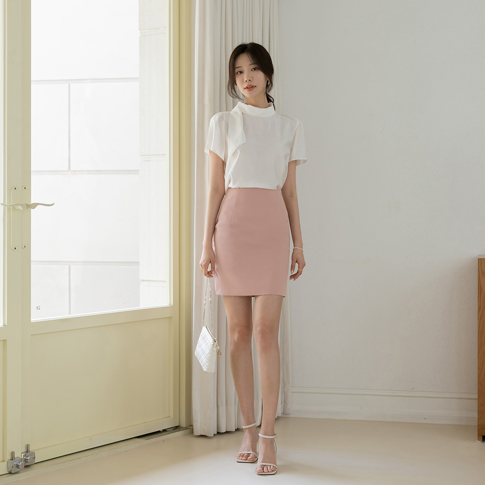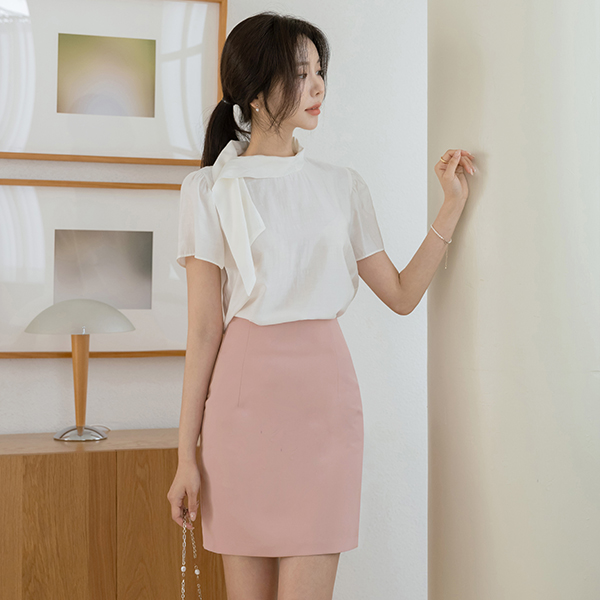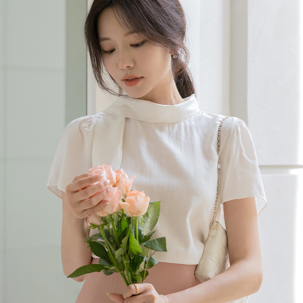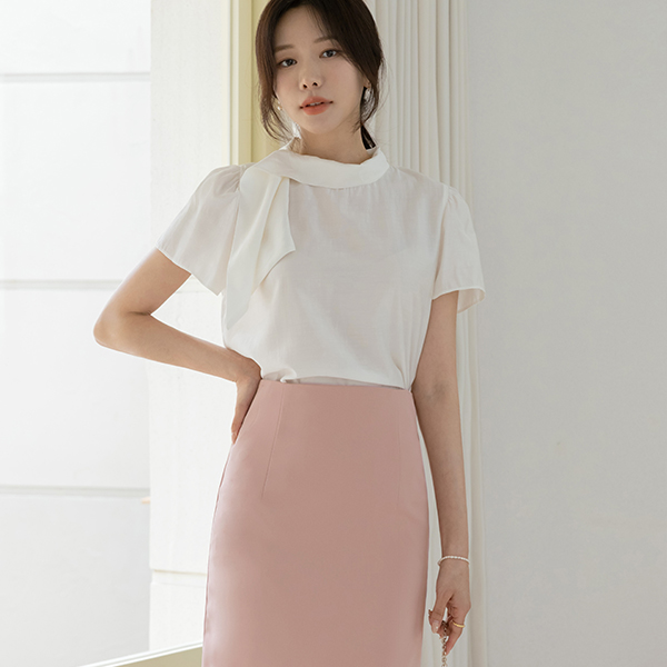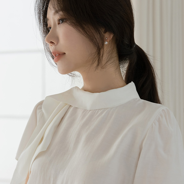 ソフト タイネック 半そで ブラウス