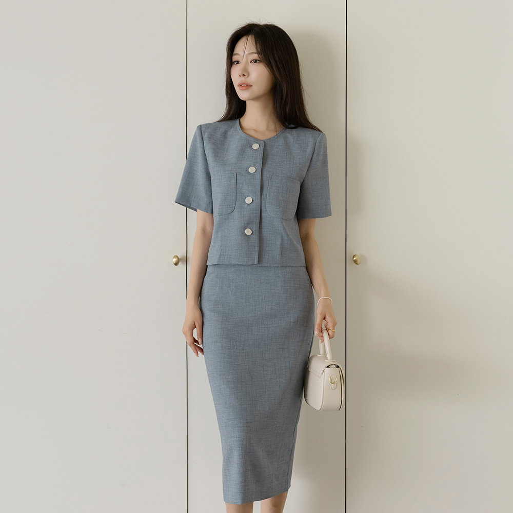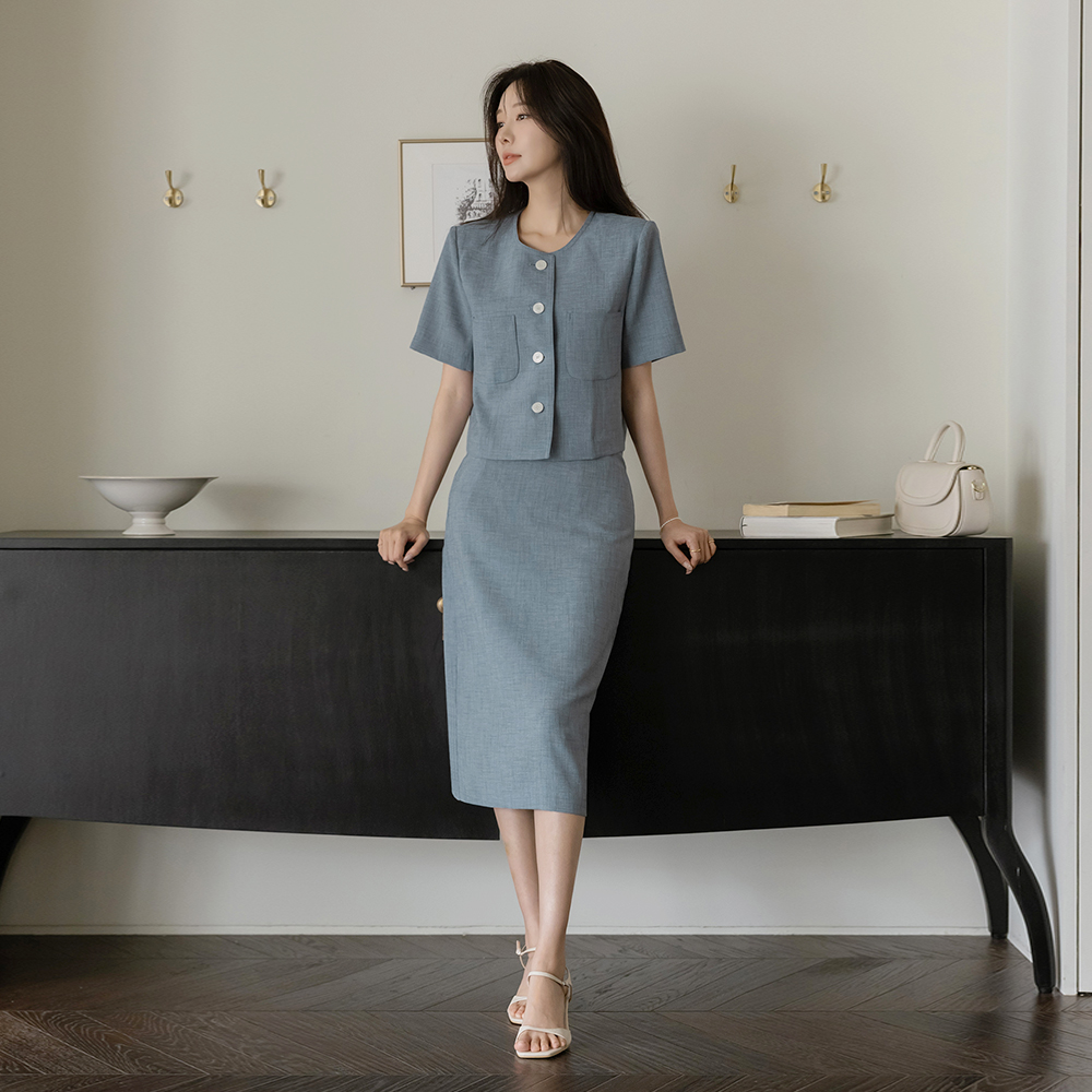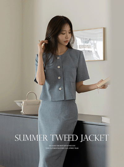 Rya ラウンドネック サマー ツイード Set-up ジャケット
