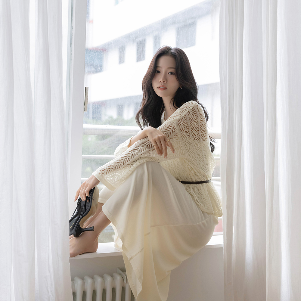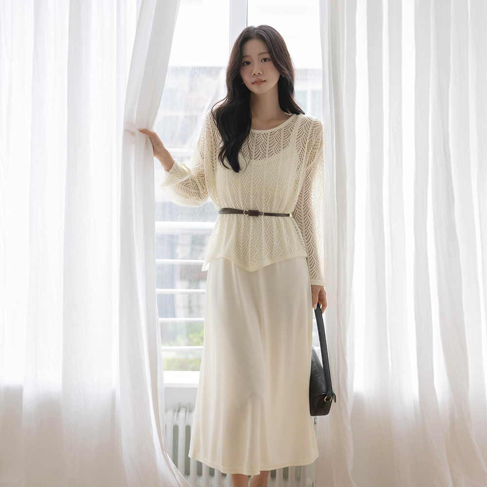 すかし ニット&パッド内蔵 袖なし ワンピース SET(+ベルト)