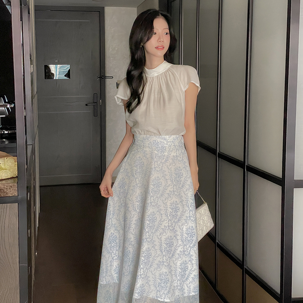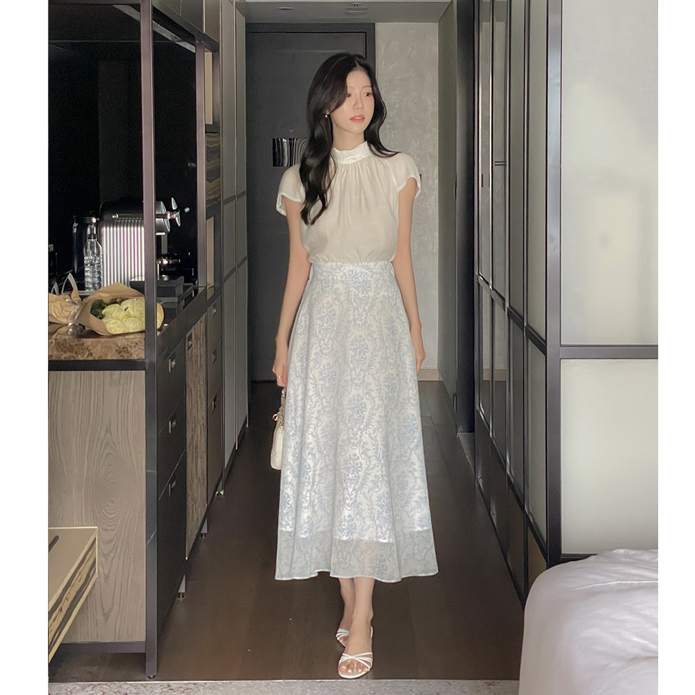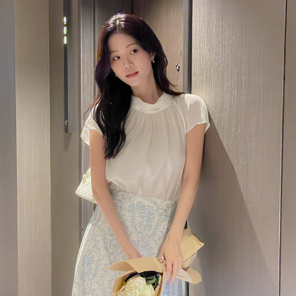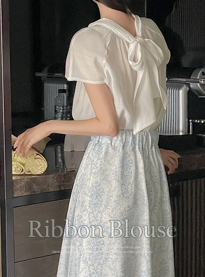 ソフト シャーリングネック バックリボン シースルー ブラウス