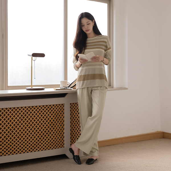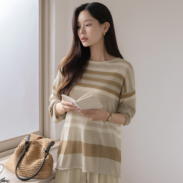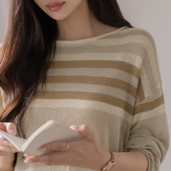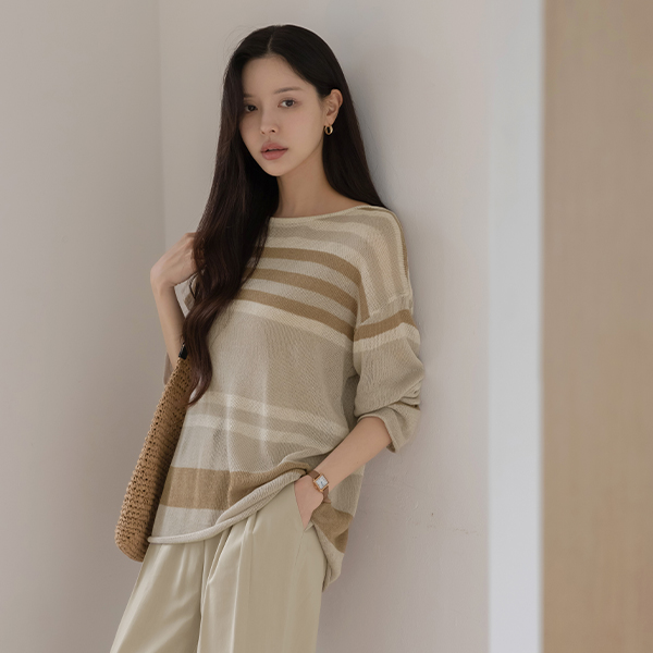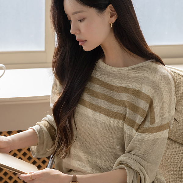 リネン ストライプ ルーズフィット ニット