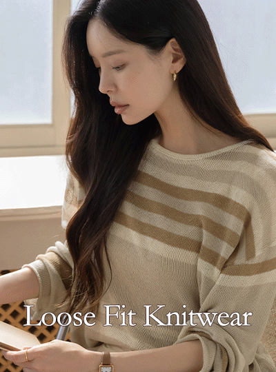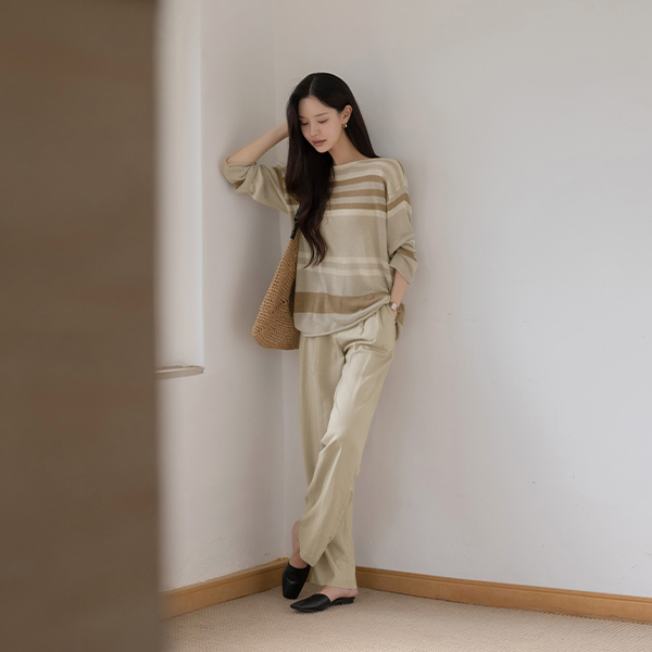 リネン ストライプ ルーズフィット ニット