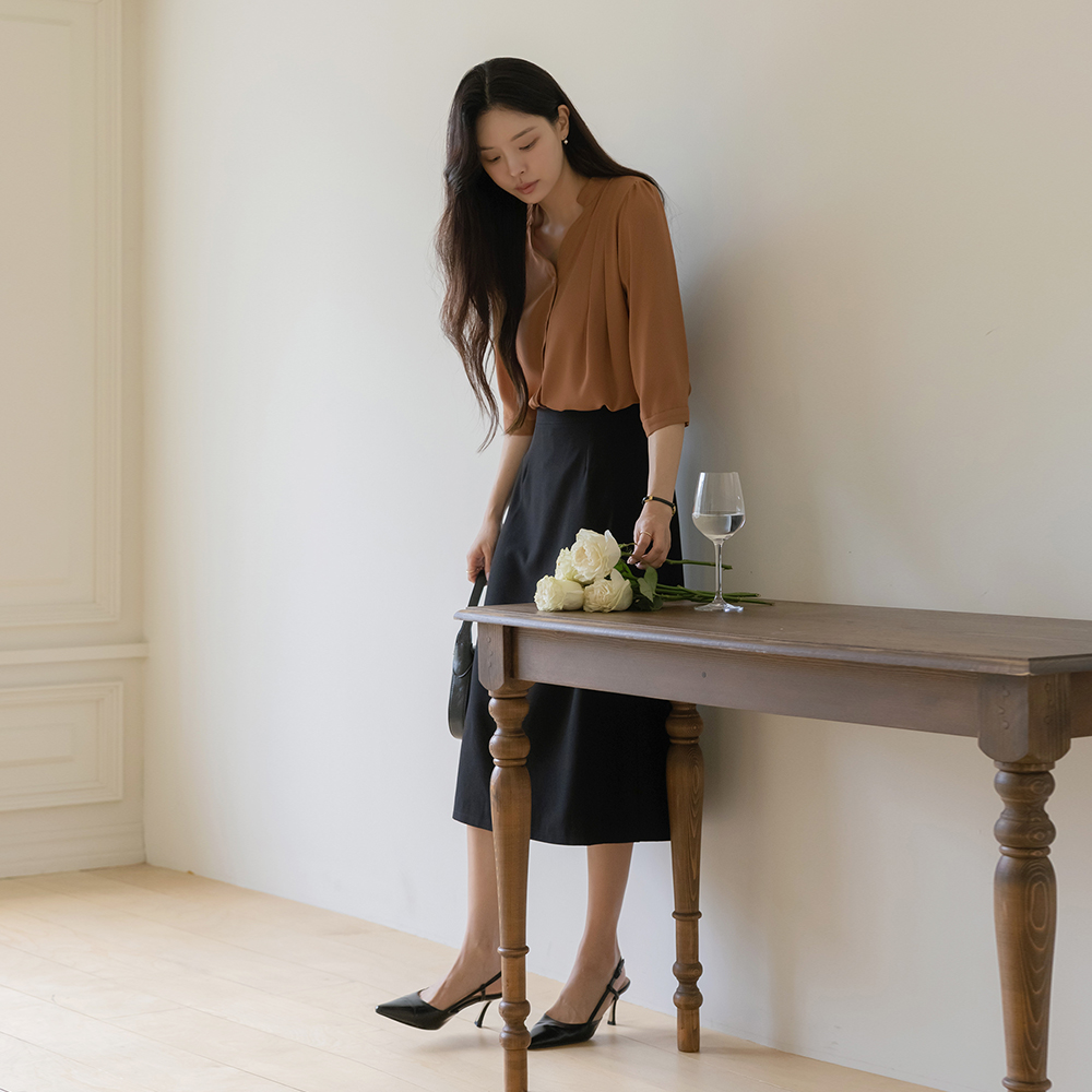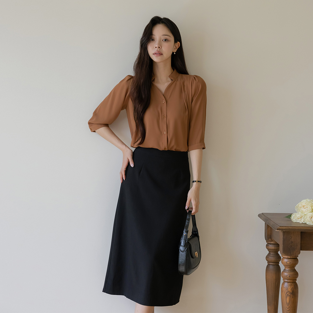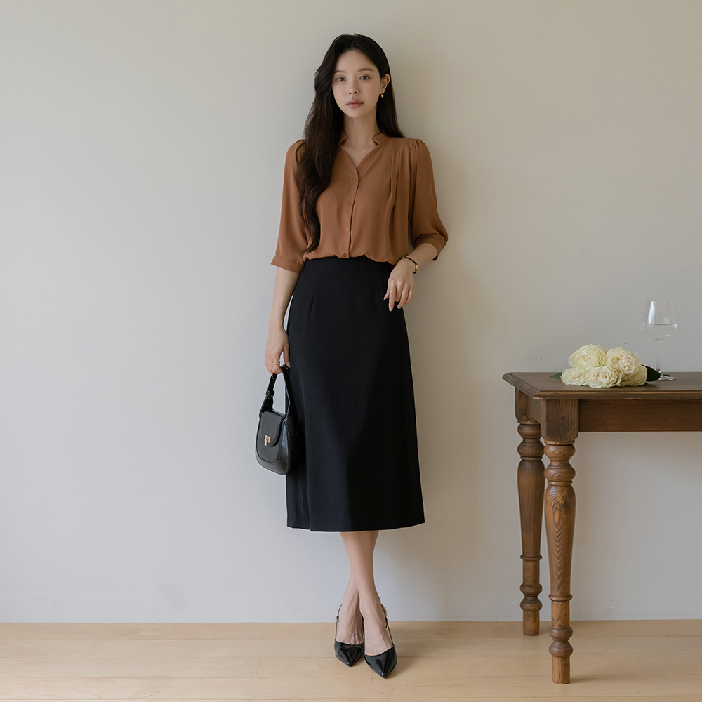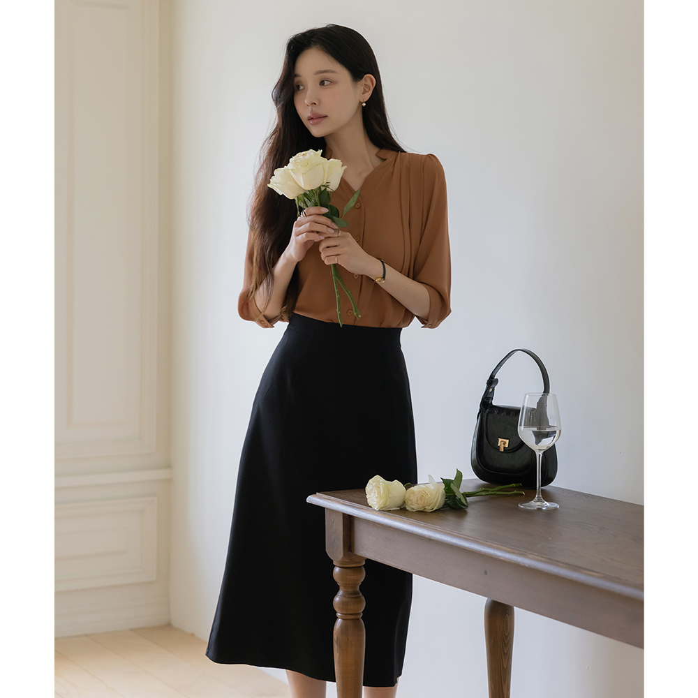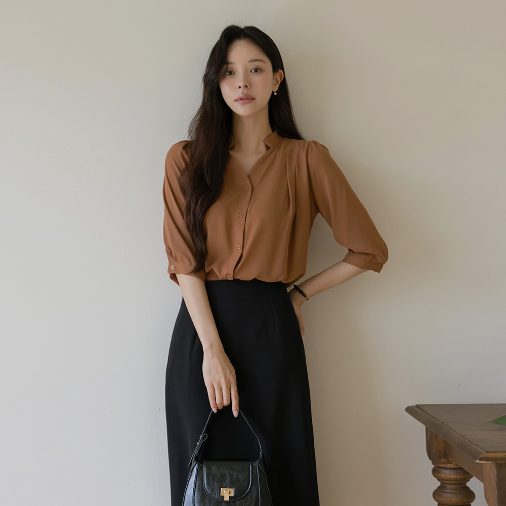 ハート線 半オープン チャイナ ピンタック ブラウス