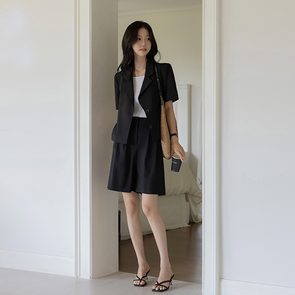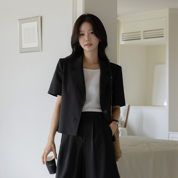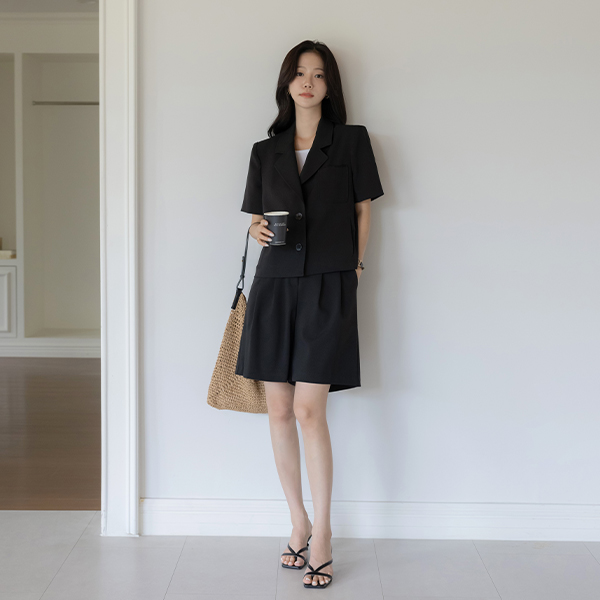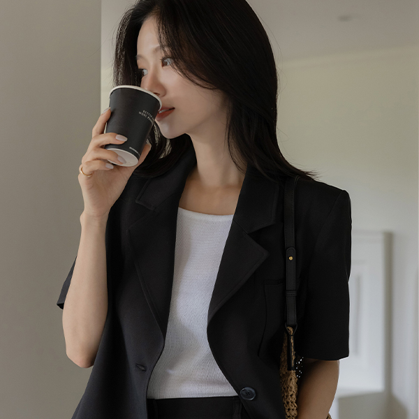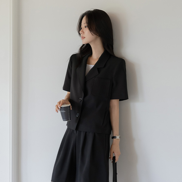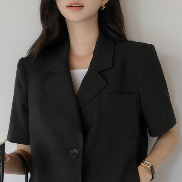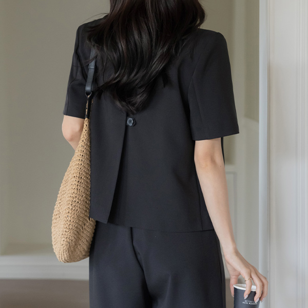 ルーシー カラーネック うしろボタン 切開 Set-up ジャケット