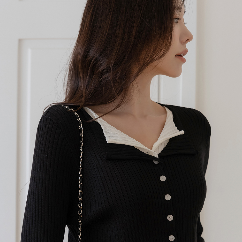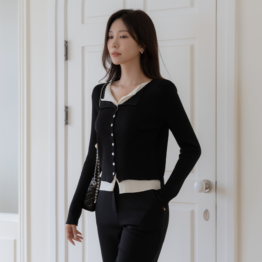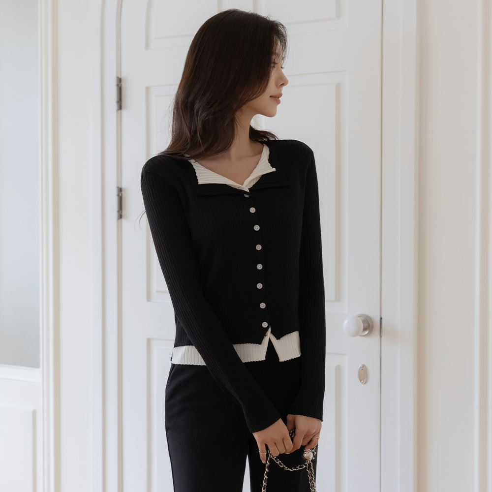 レイヤード 配色 コール天 カーディガン