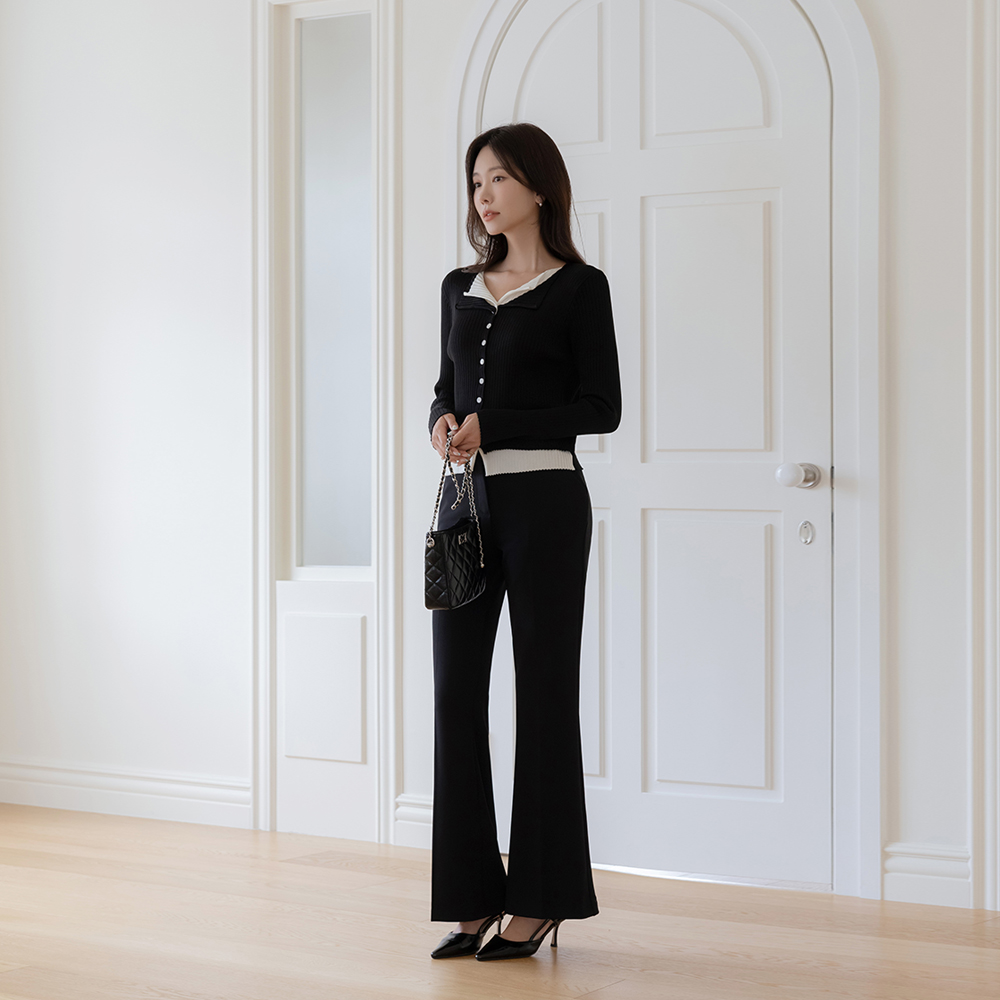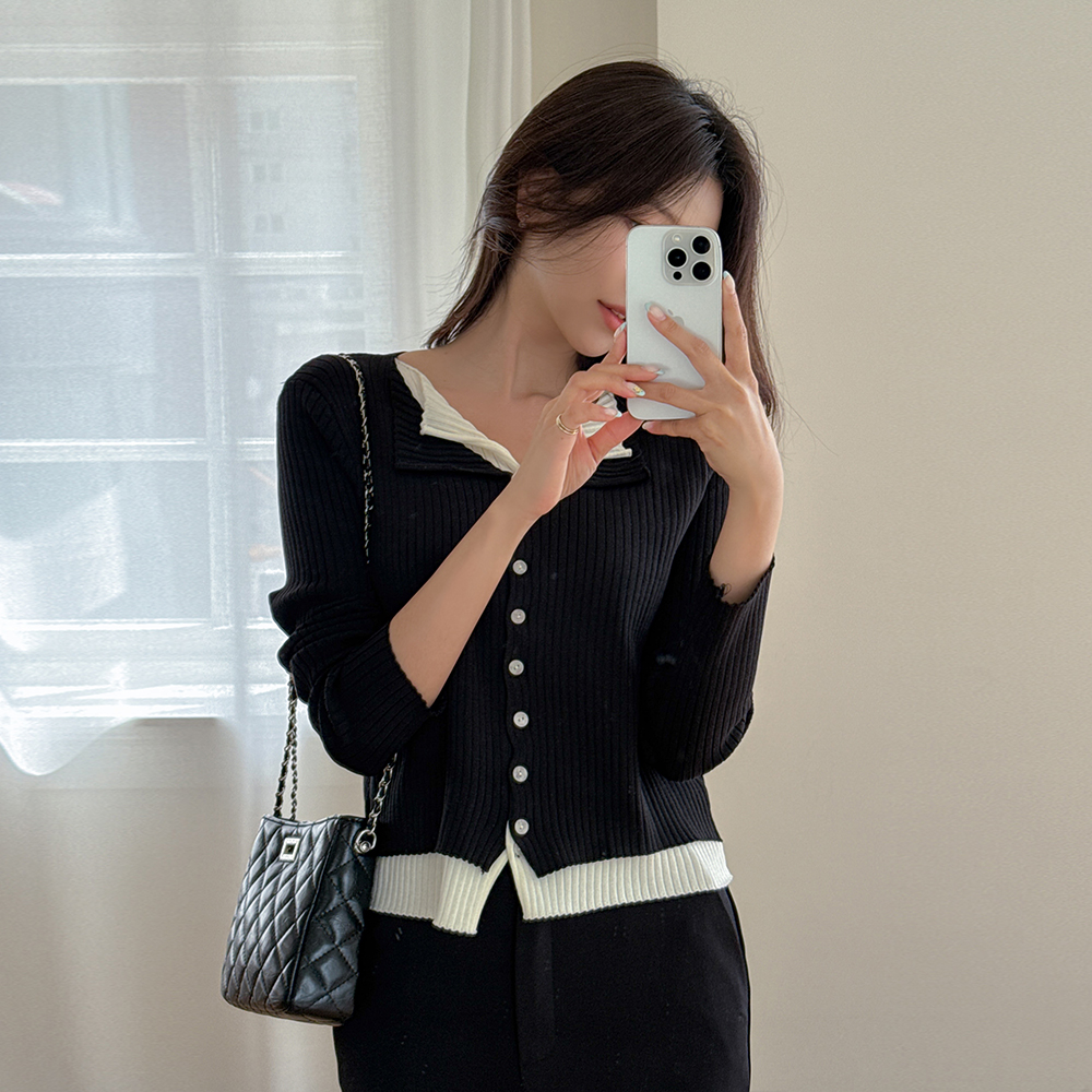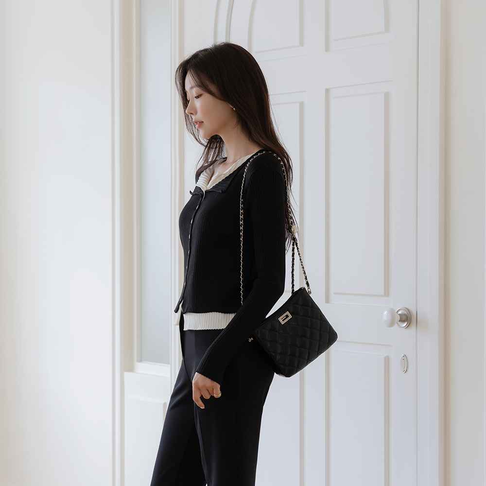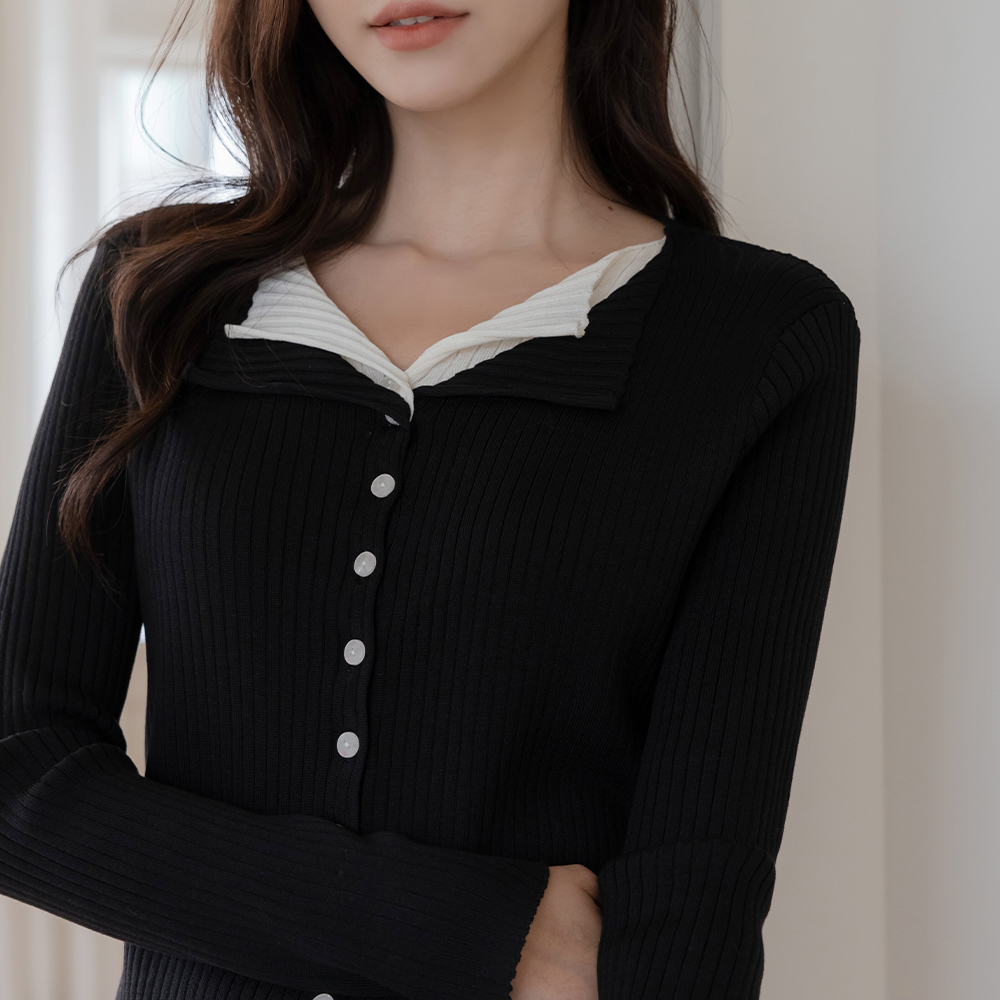 レイヤード 配色 コール天 カーディガン