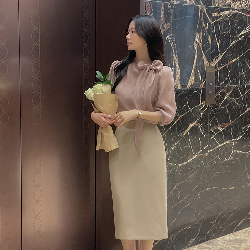 ロマンチック テンセル リボン·ネックライン クロップド ブラウス