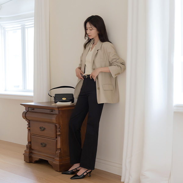アンバランス ネックライン 長袖 コール天 ニット(+ベルト)