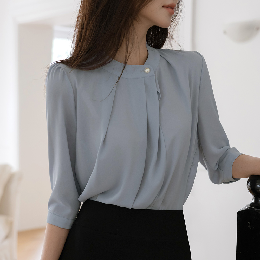 フェミニン サイド 真珠ボタン ブラウス(7分袖) Ⅲ