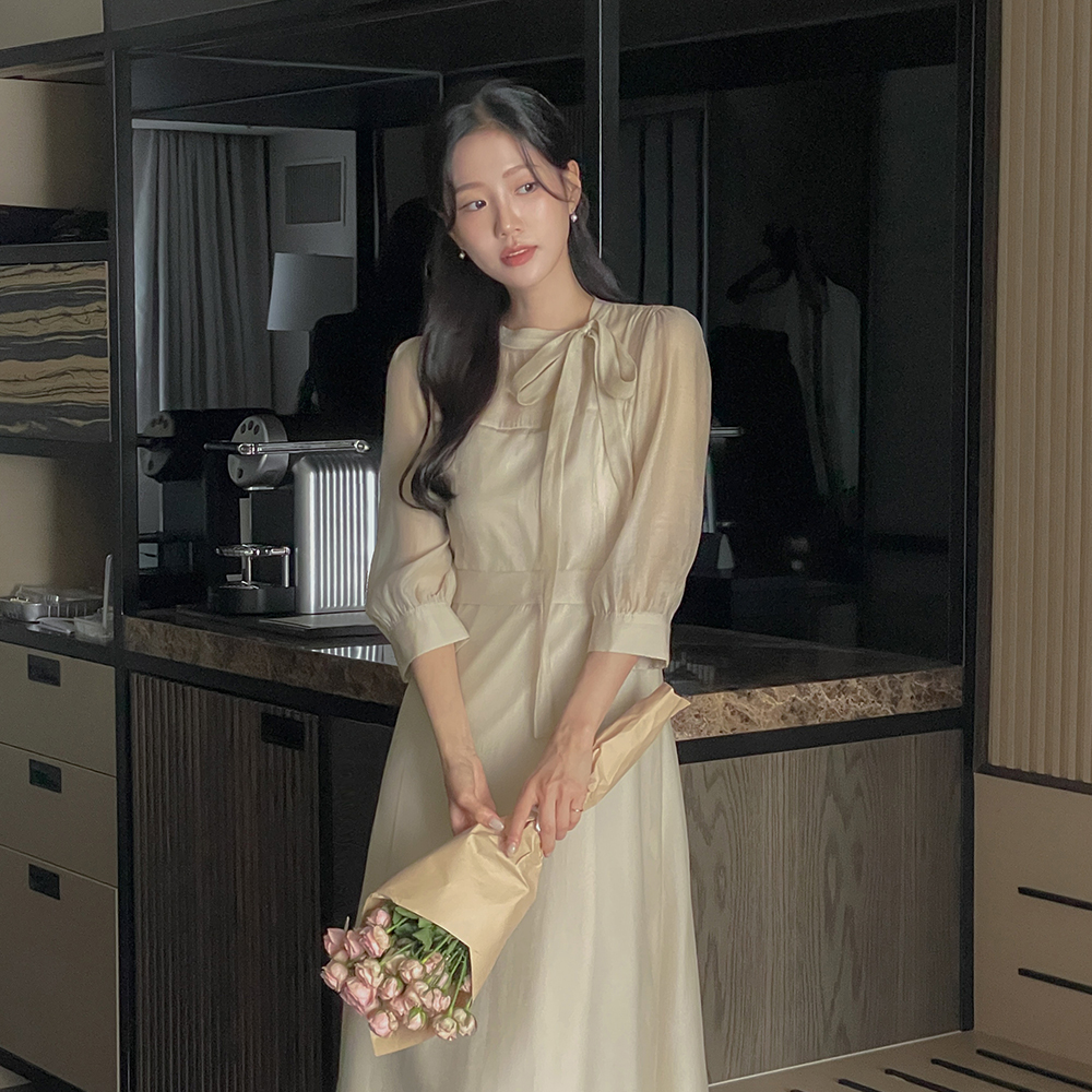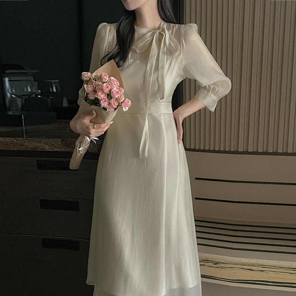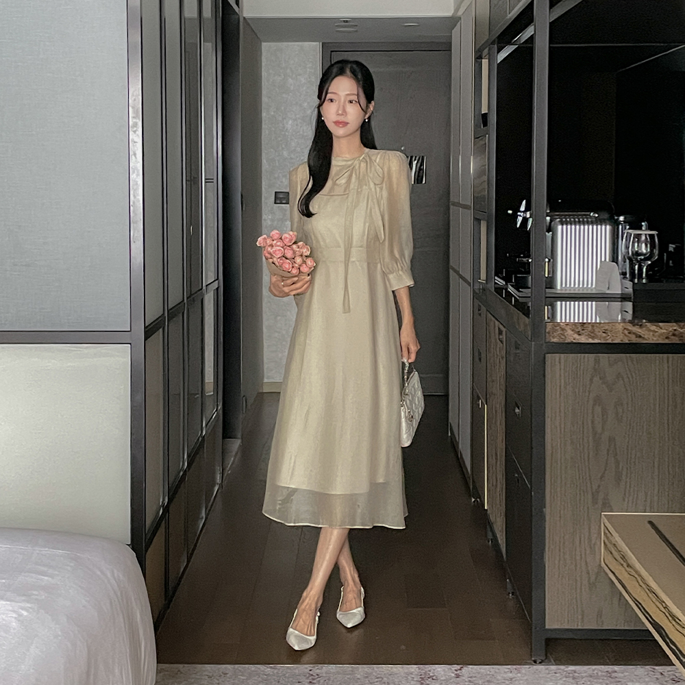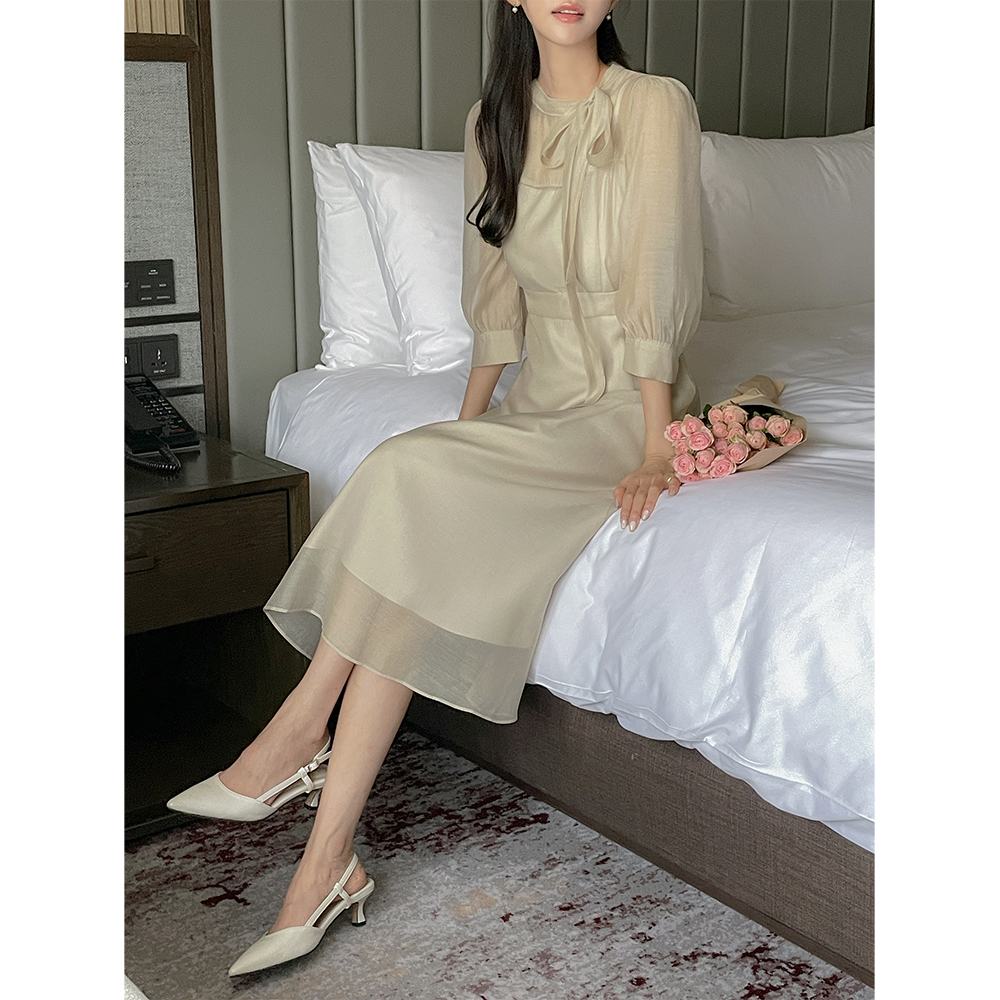 タイネック シースルー 二重 Aライン ワンピース