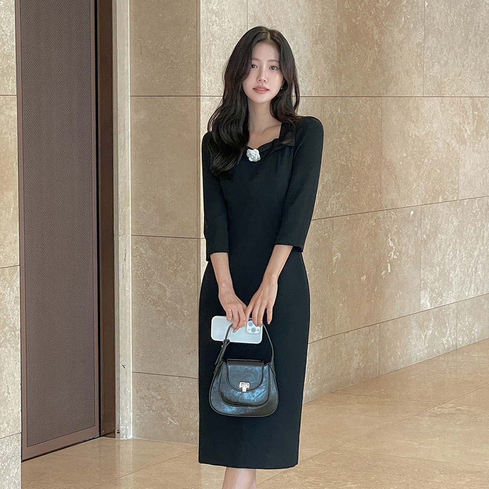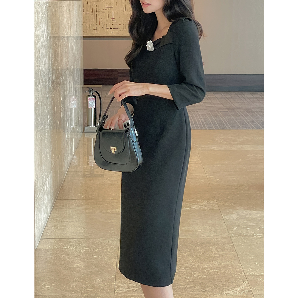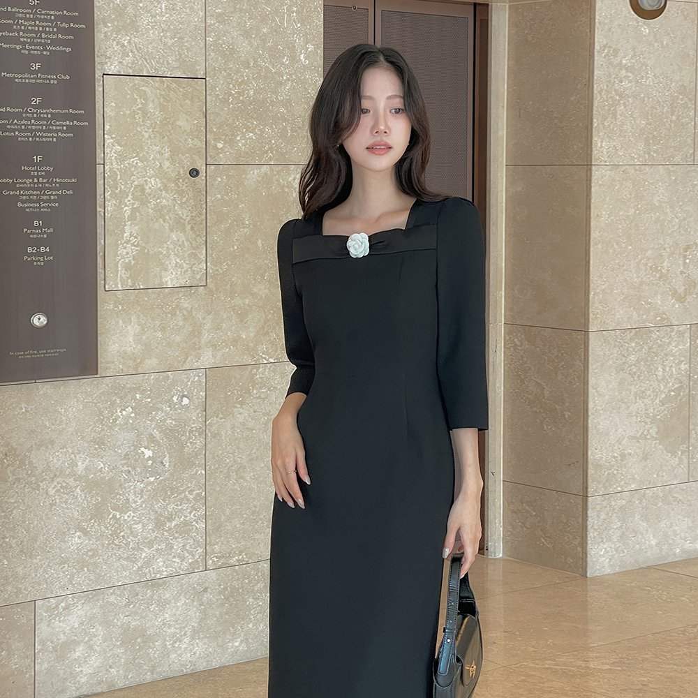 オードリー ブローチ Hライン クロップド ワンピース