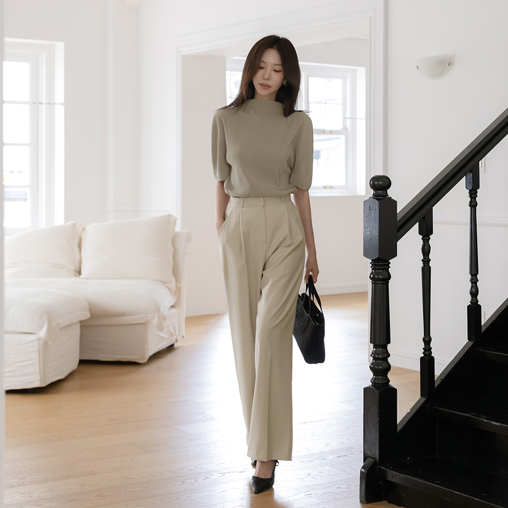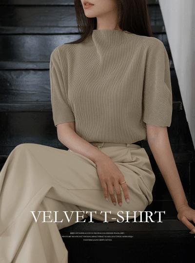 ハーフネック ベルベット プリーツ 半そで ティーシャツ