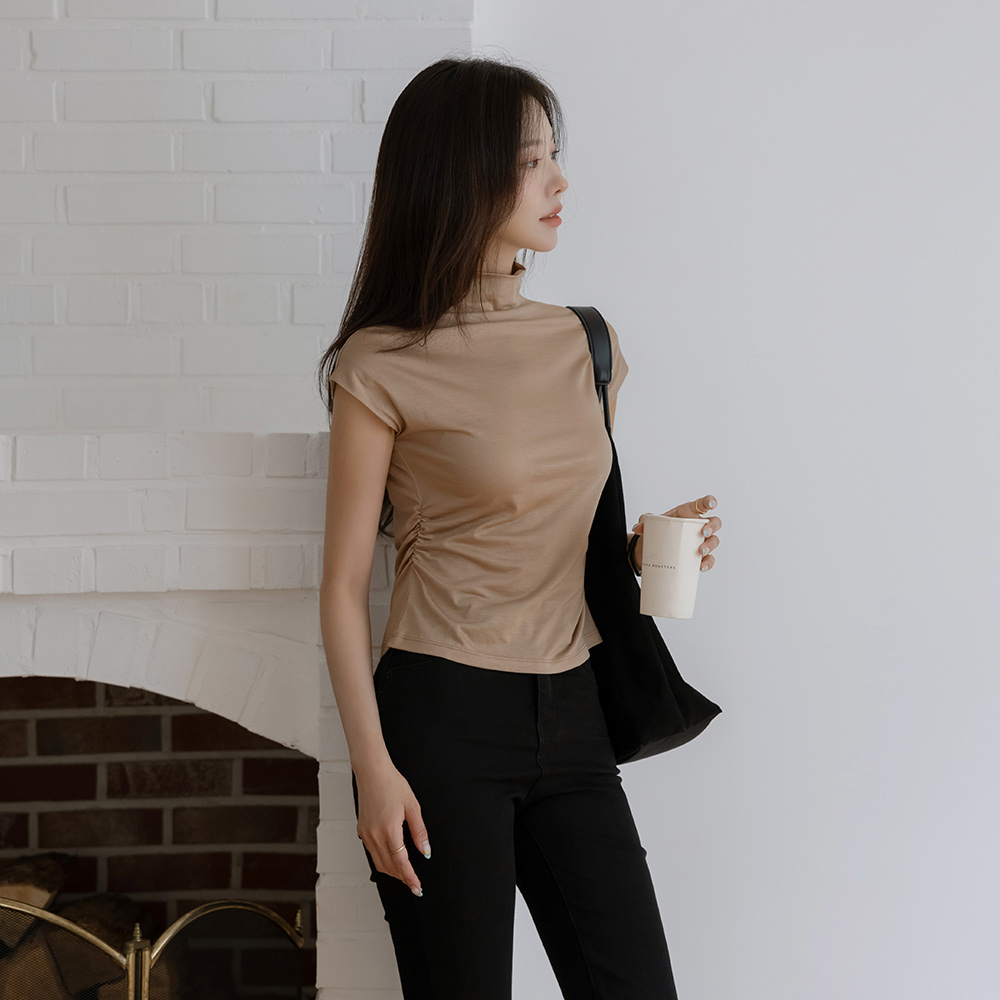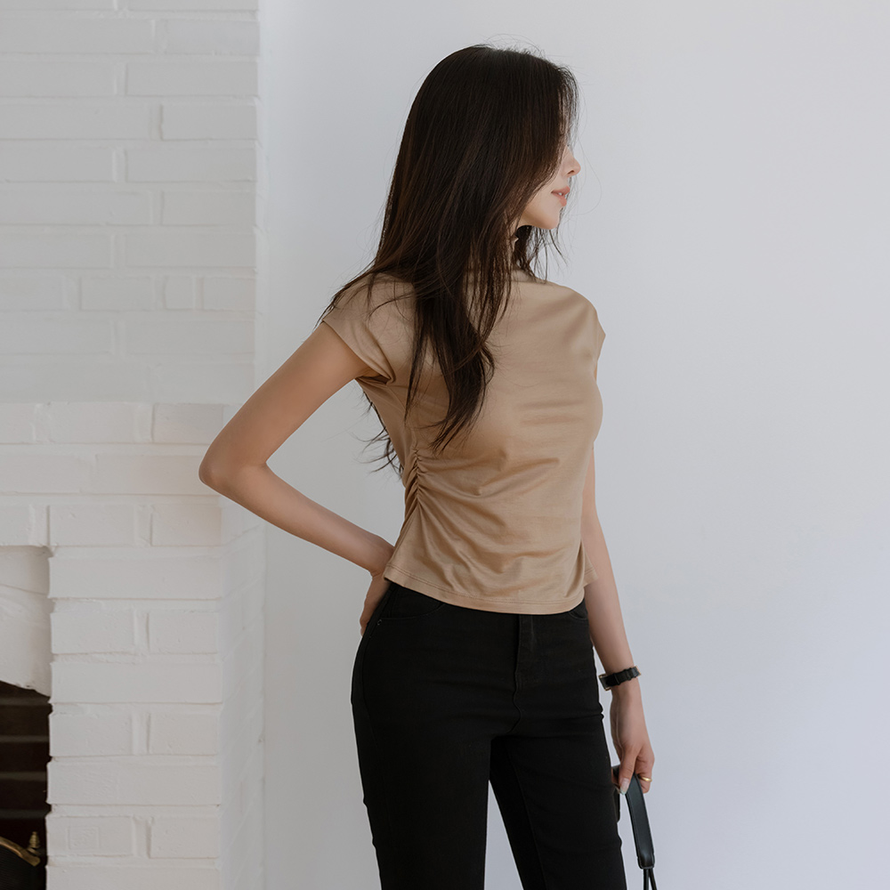 サイド シャーリング ハーフネック ティーシャツ