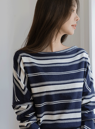 カジュアル 唇ネックライン ストライプ ニット