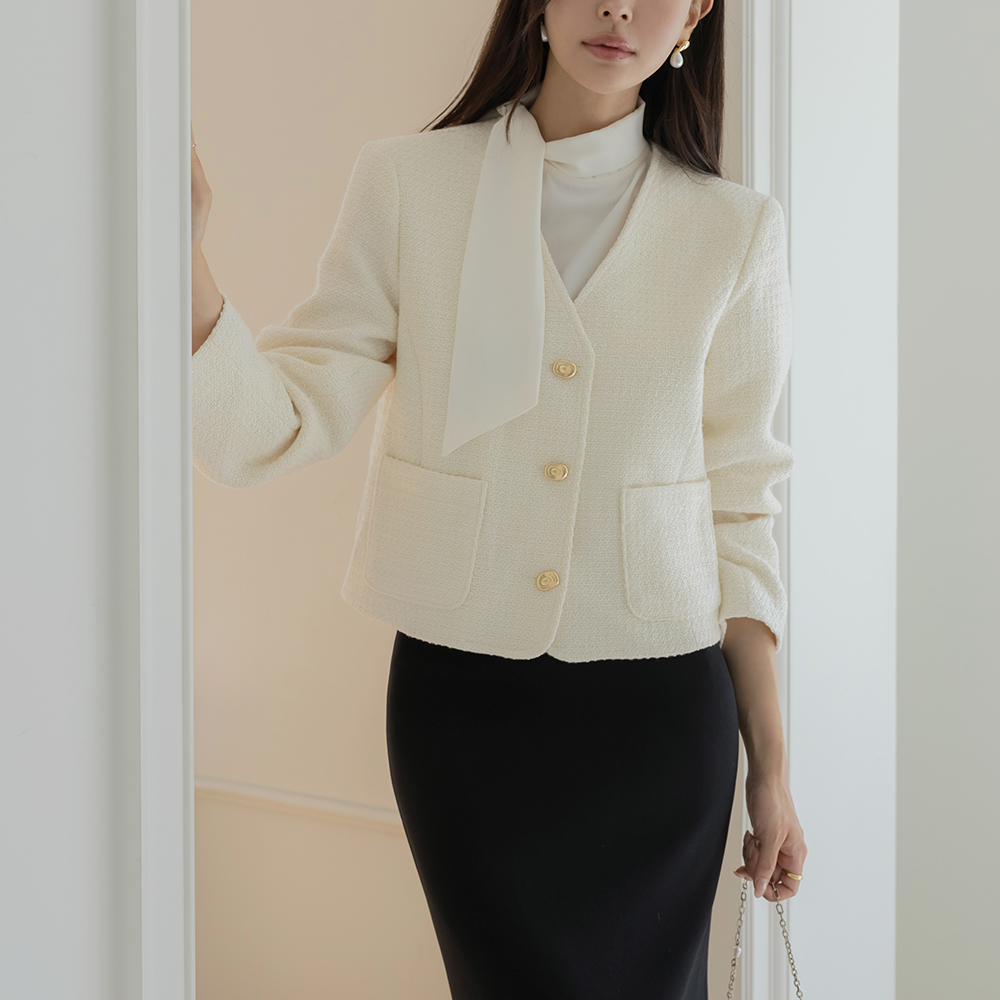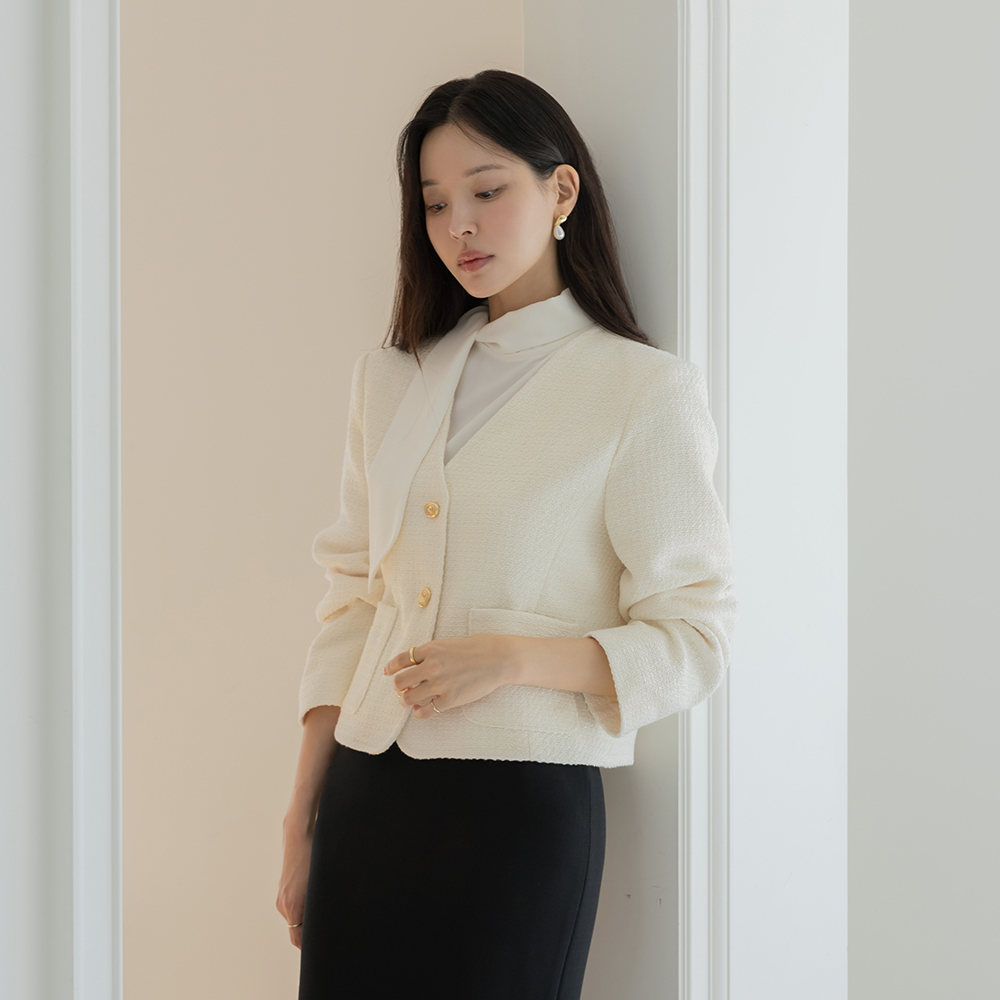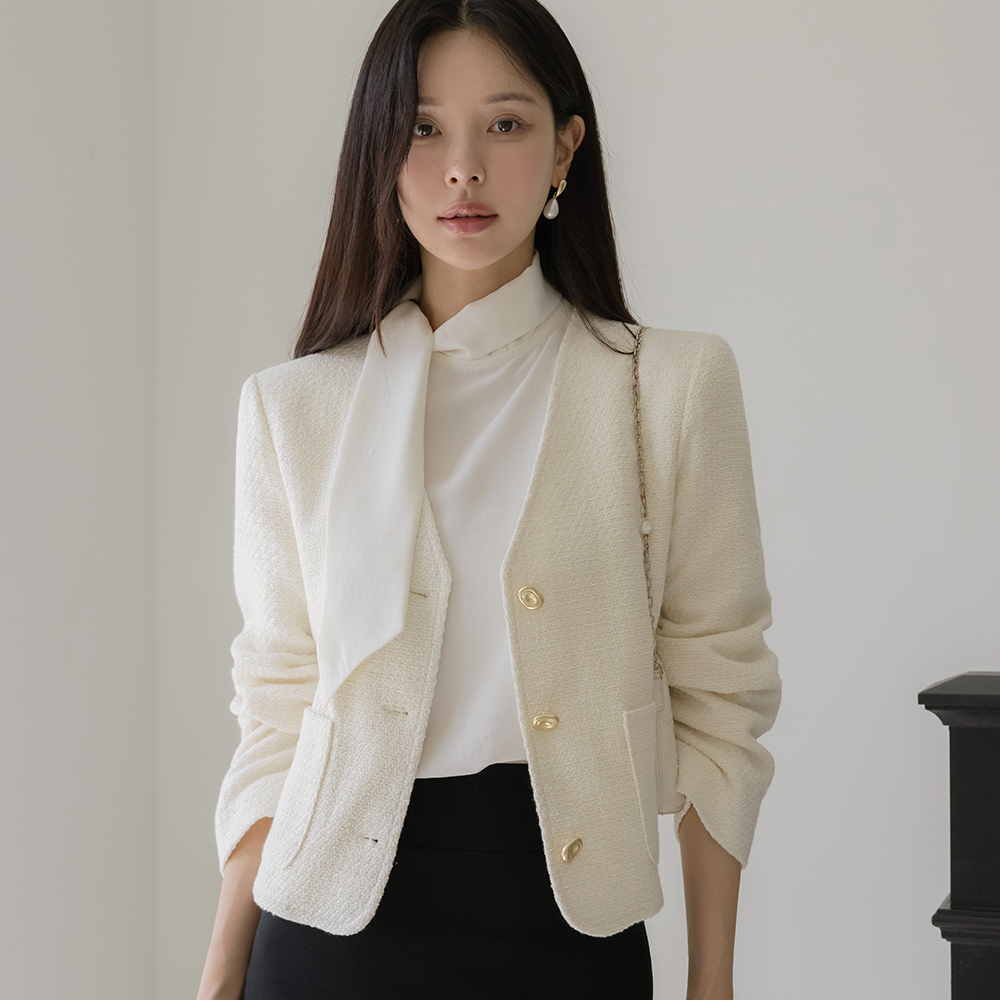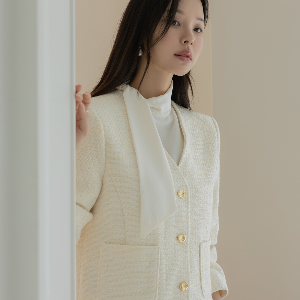 フェミニン スカーフネック パフ ブラウス