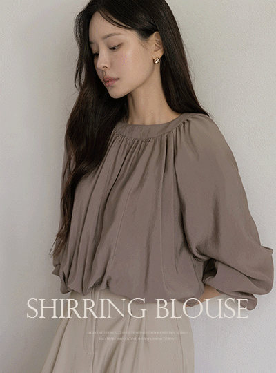 ナチュラル シャーリングネック バンディング ブラウス