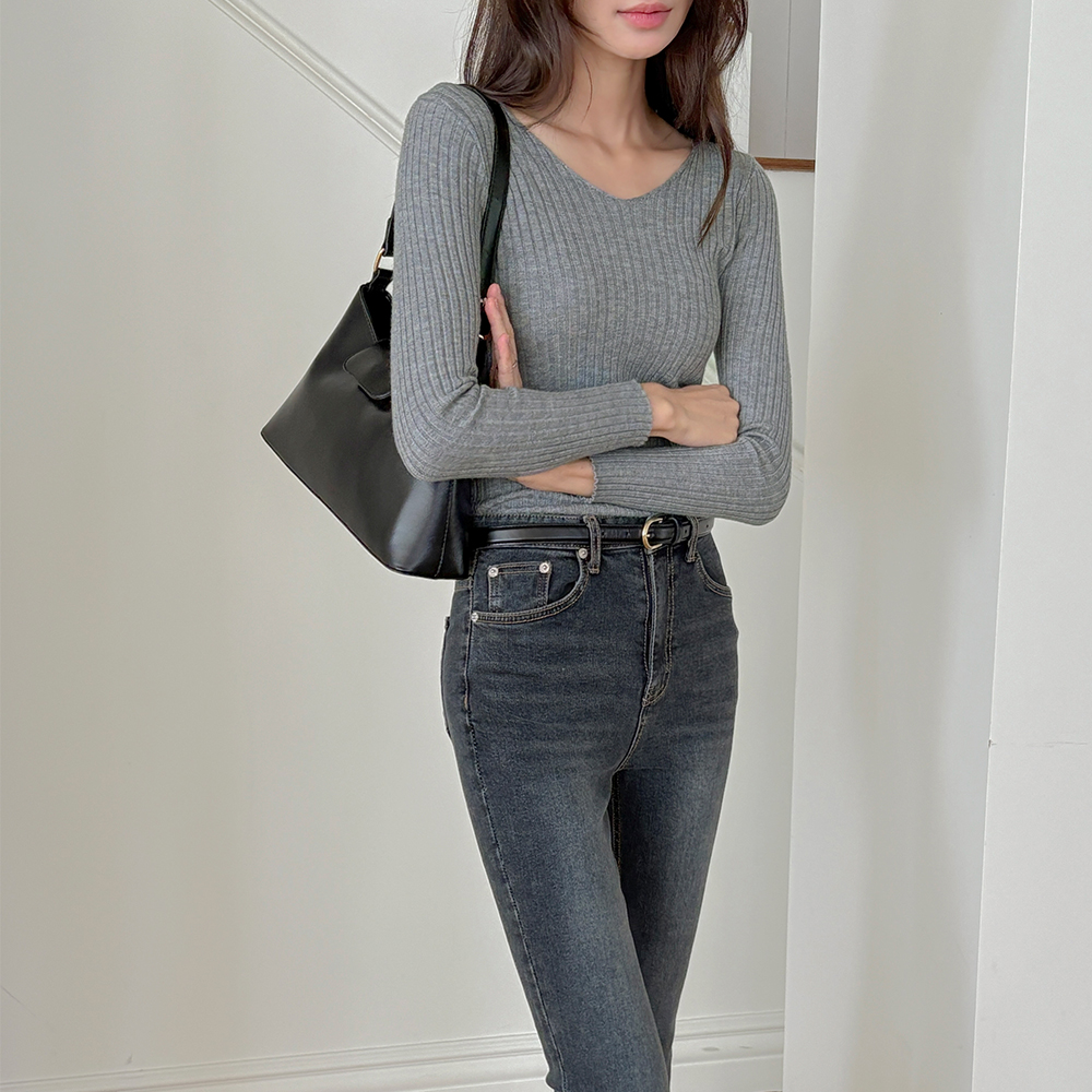 軟弱だ ソフト ほっそりした Vネック コール天 ニット