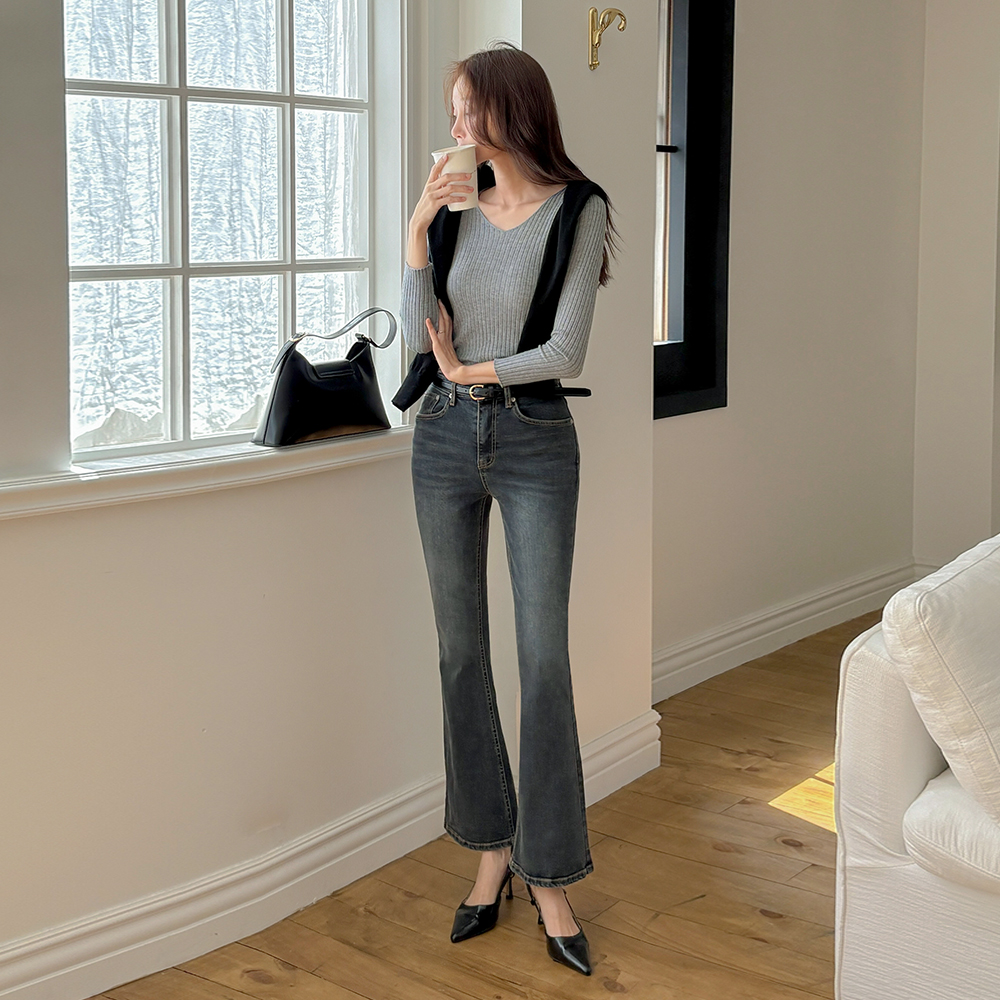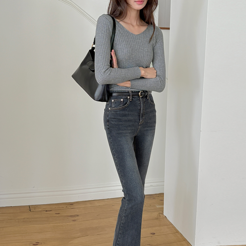 軟弱だ ソフト ほっそりした Vネック コール天 ニット