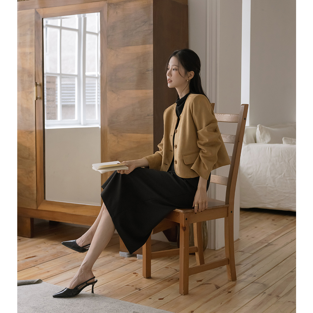 フレンチ ラウンドネック スエード ジャケット