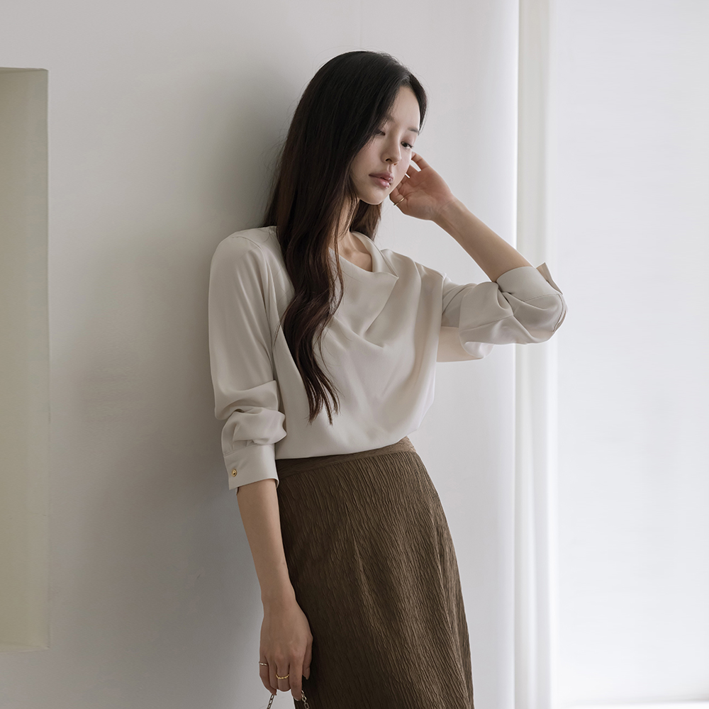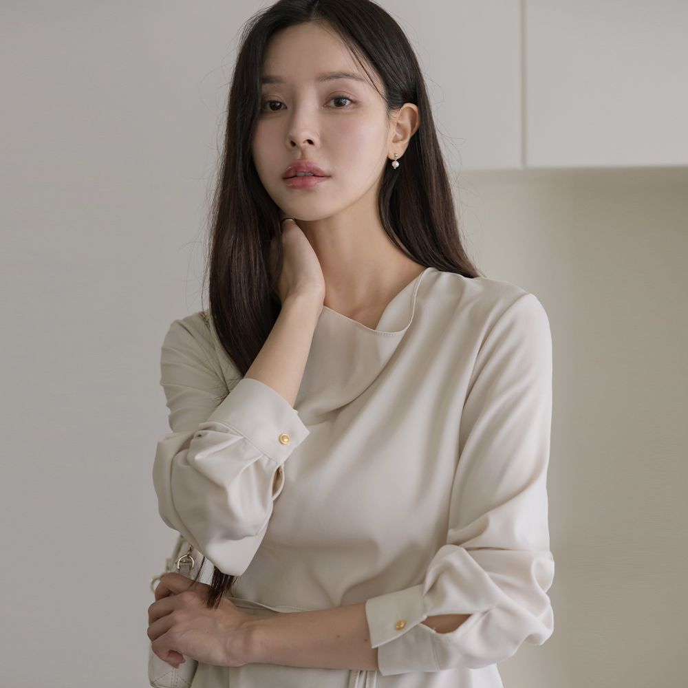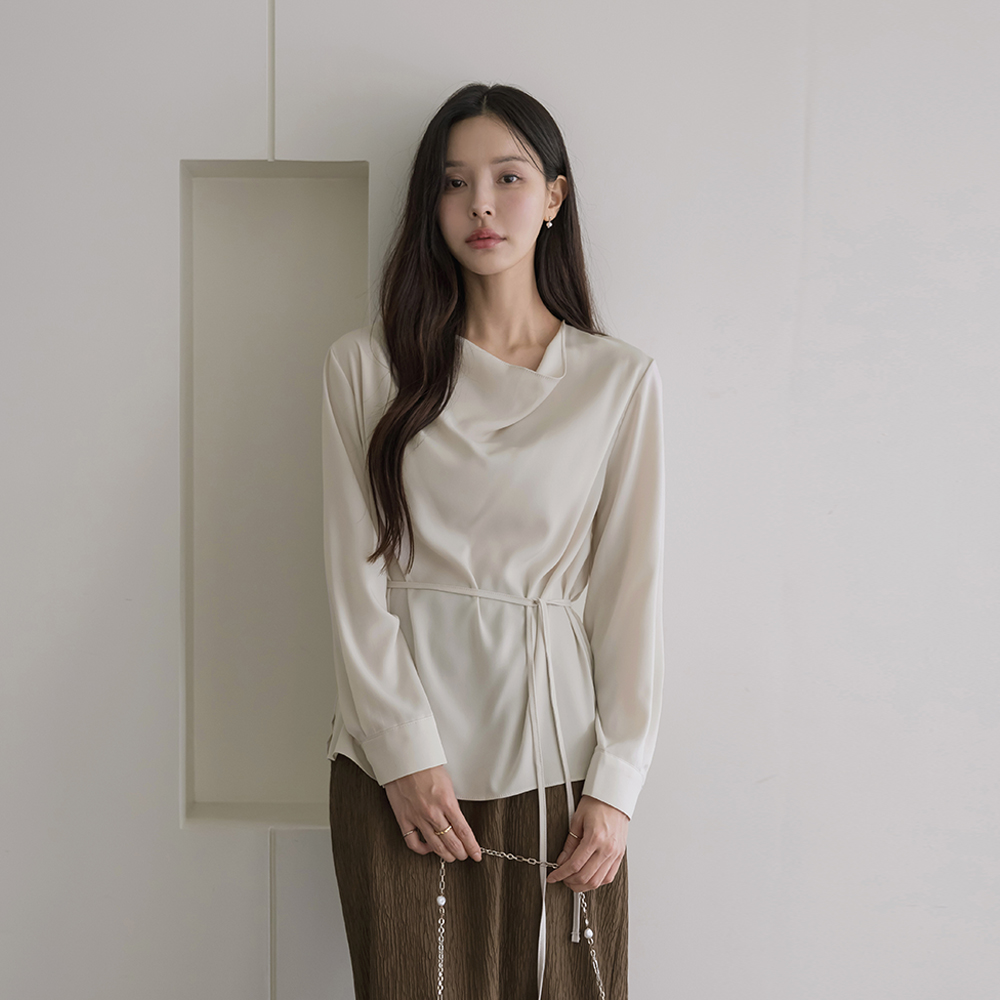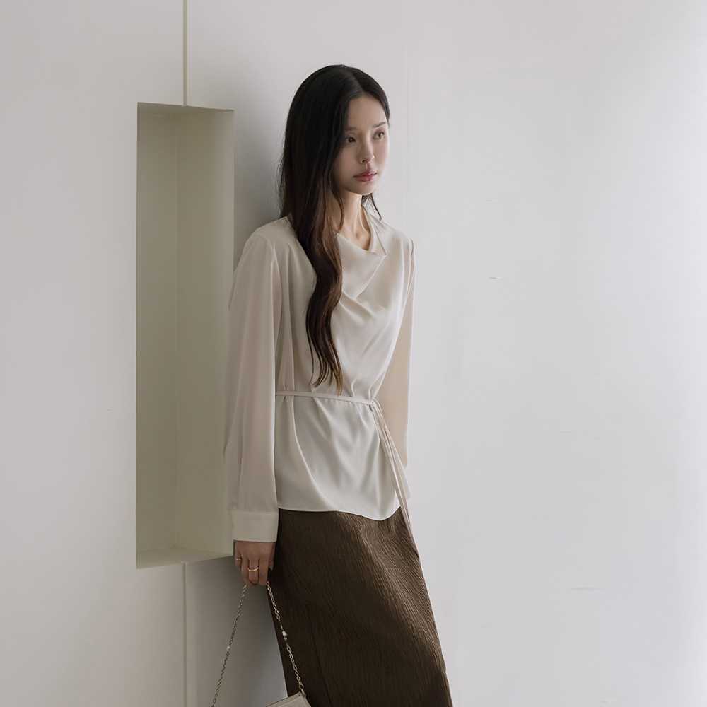 Mari カウルネック 長袖 ブラウス(+ベルト)
