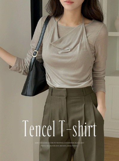 ホールターネック レイヤード スタイル テンセル ティーシャツ
