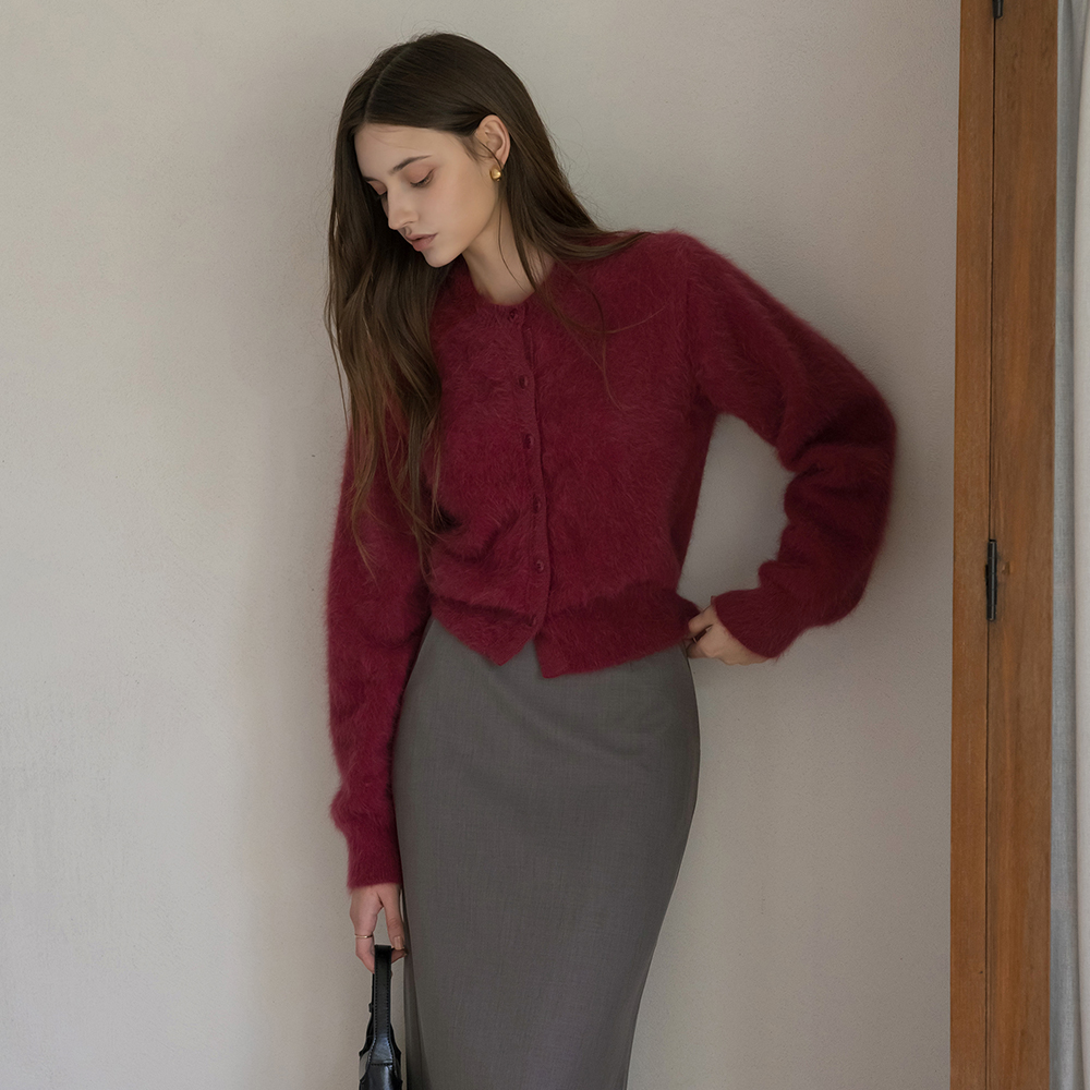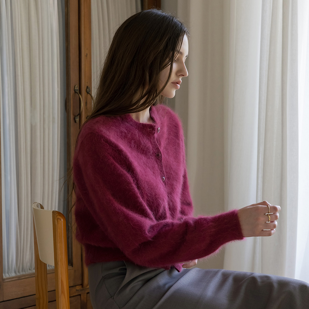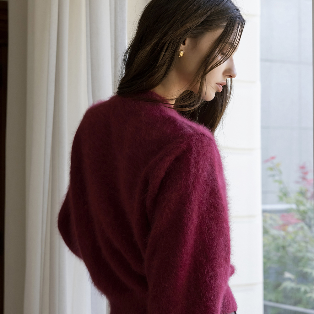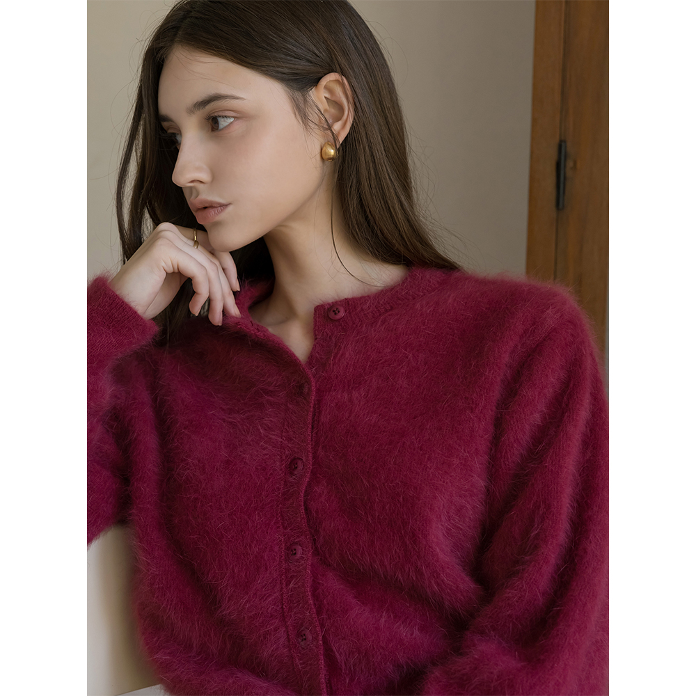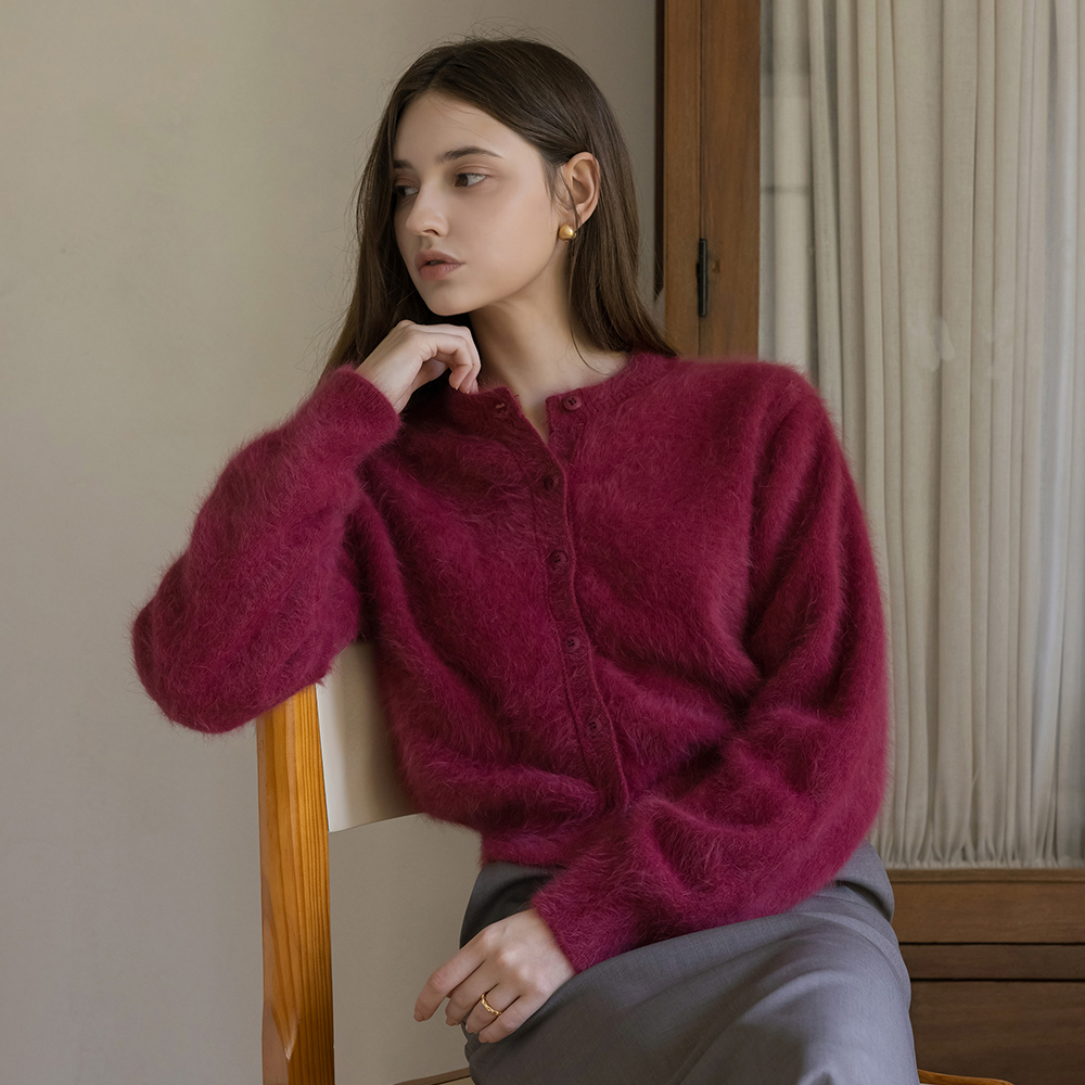 柔らかい アンゴラ ラウンド カーディガン