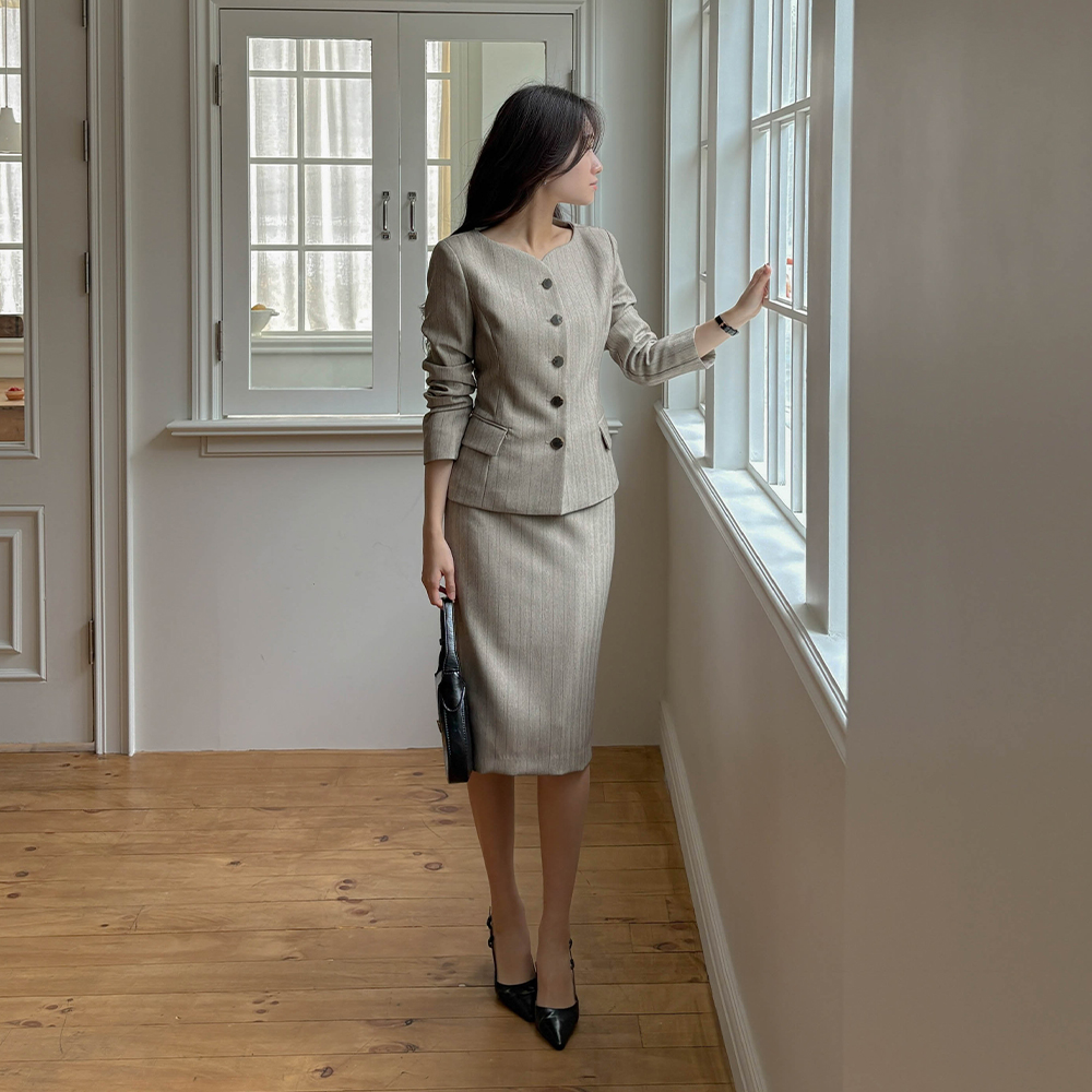 ストライプ スリムフィット Set-up ジャケット