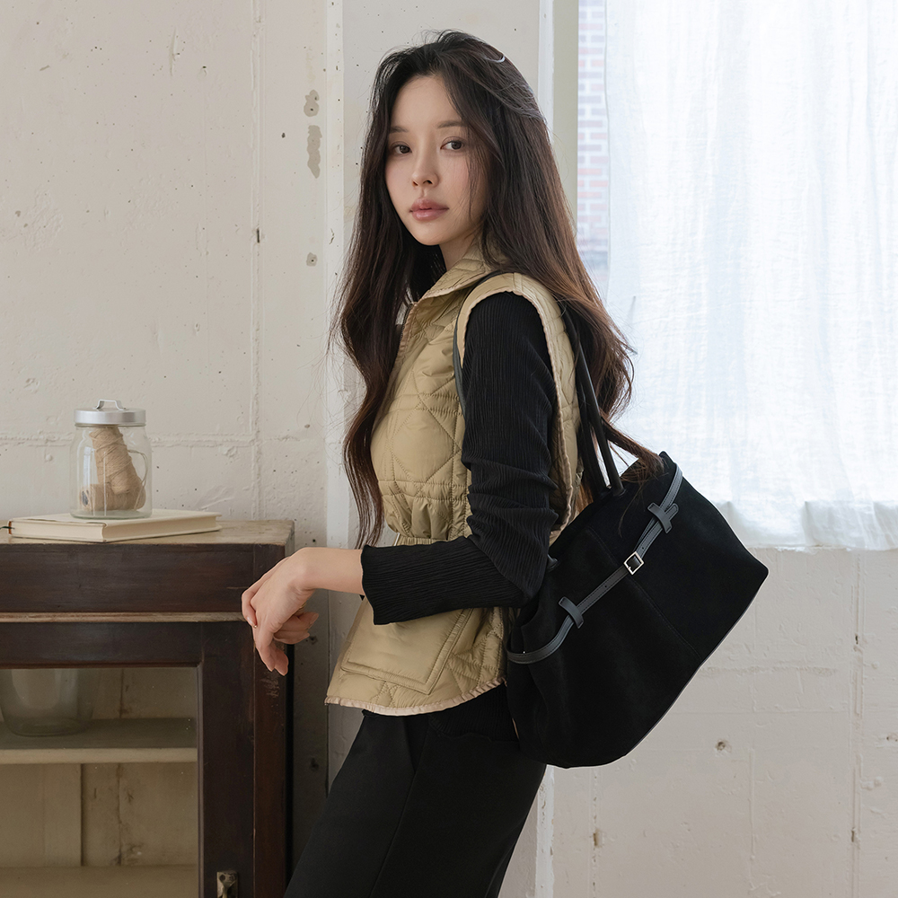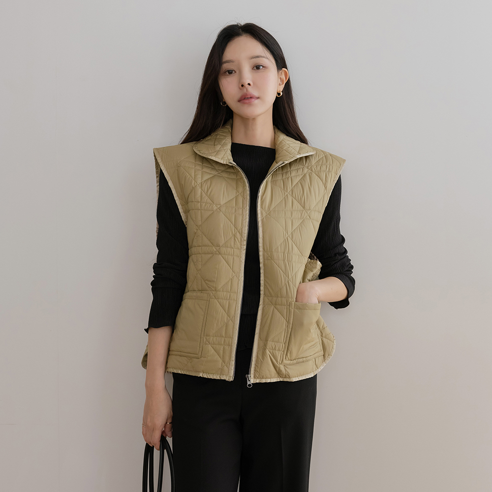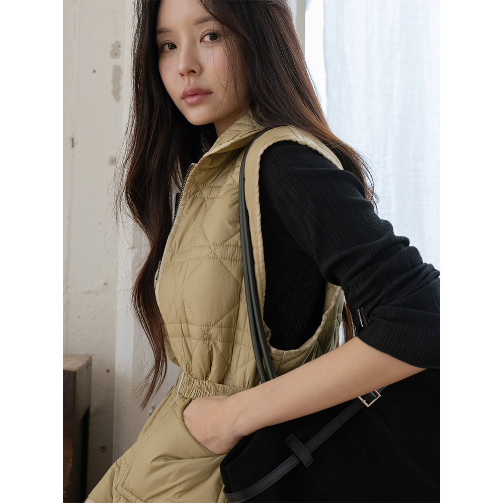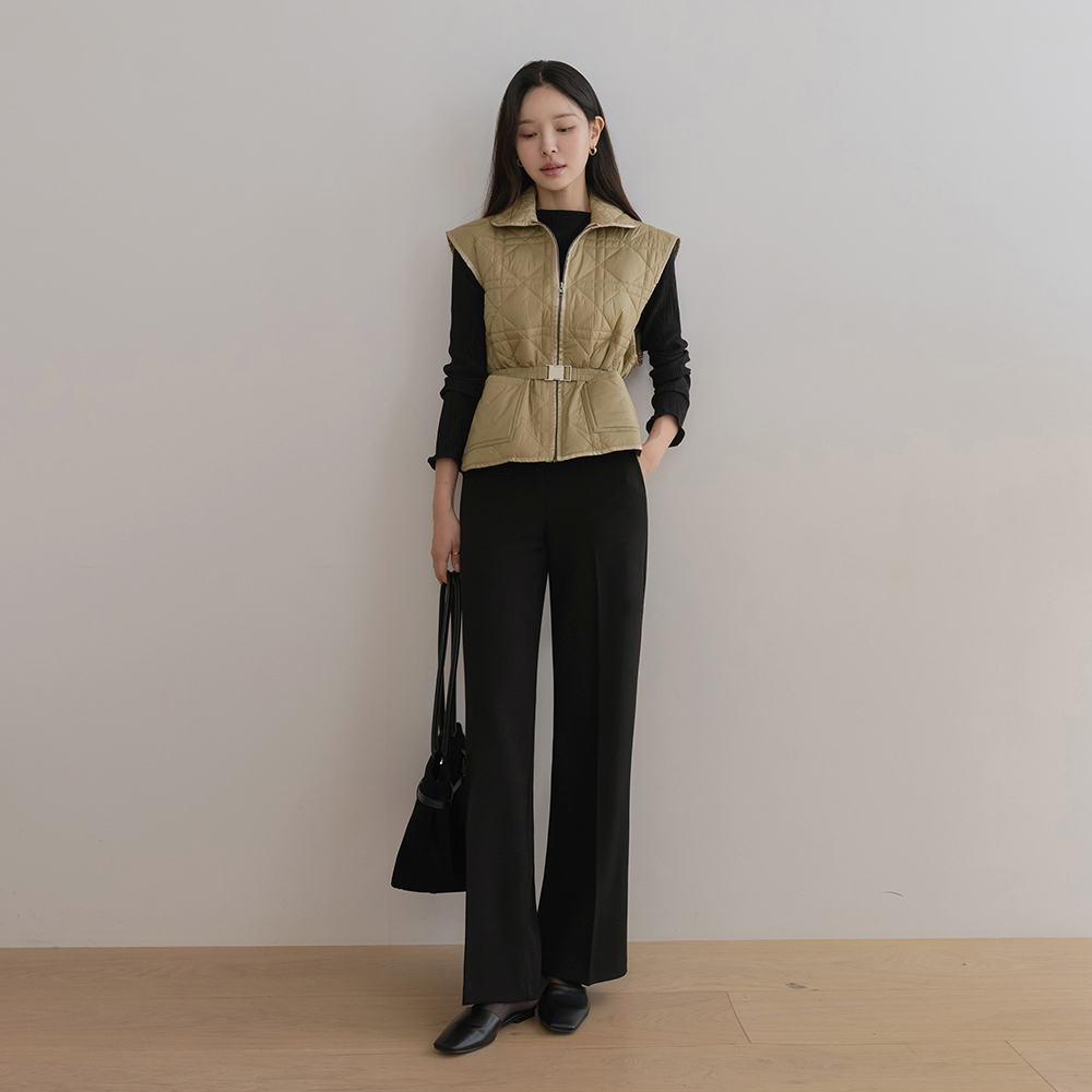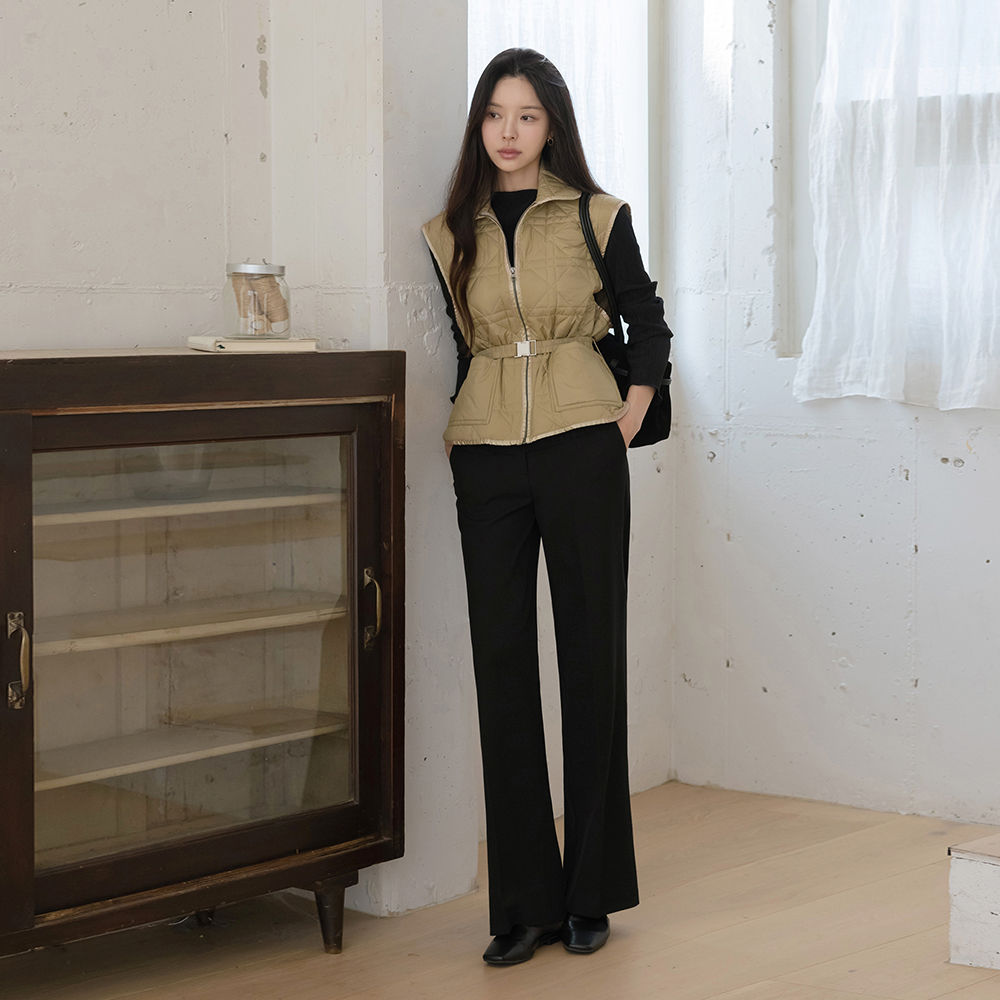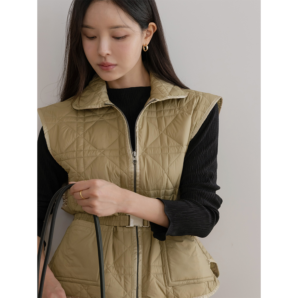 カラーネック キルティング ジッパー バディング ベスト(+ベルト)