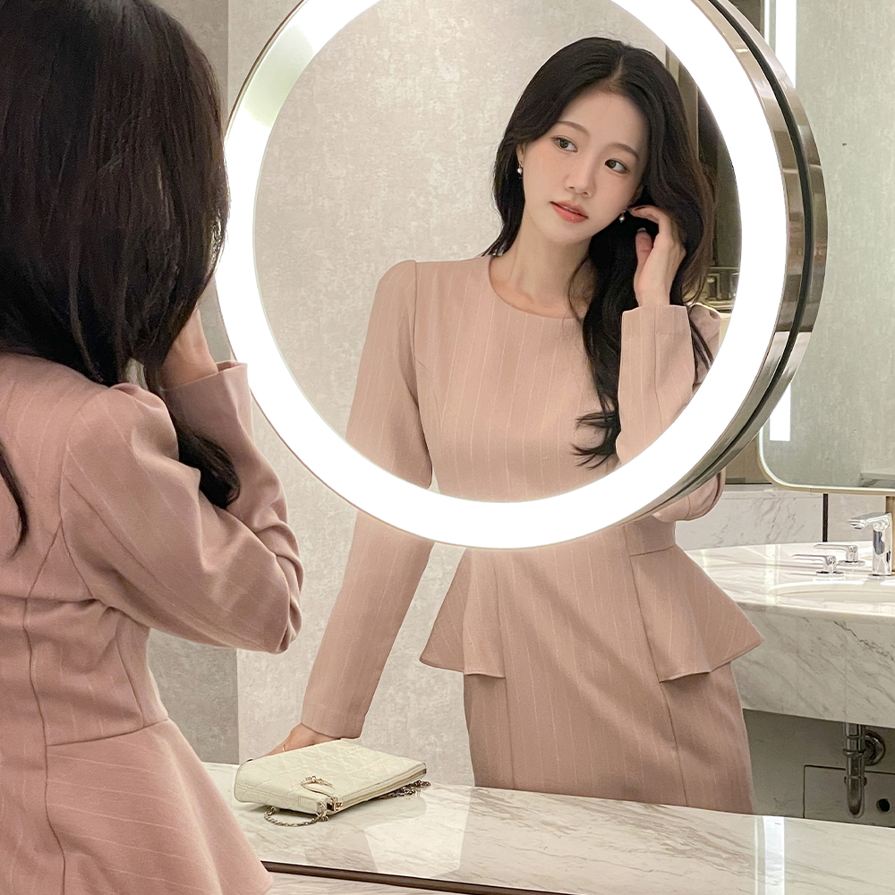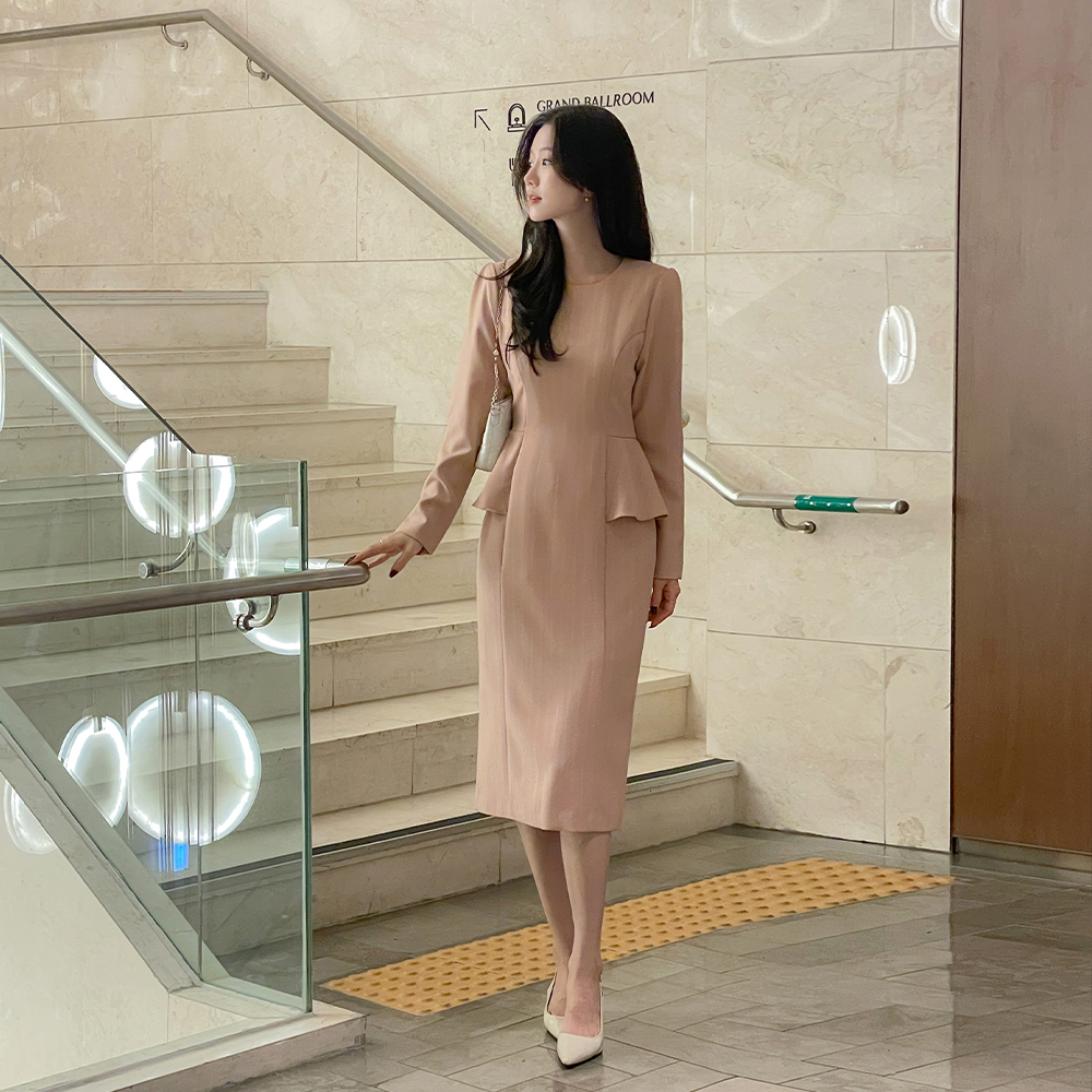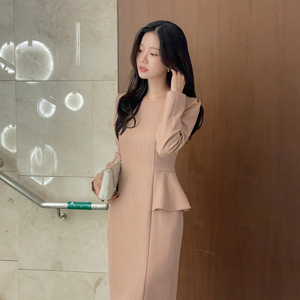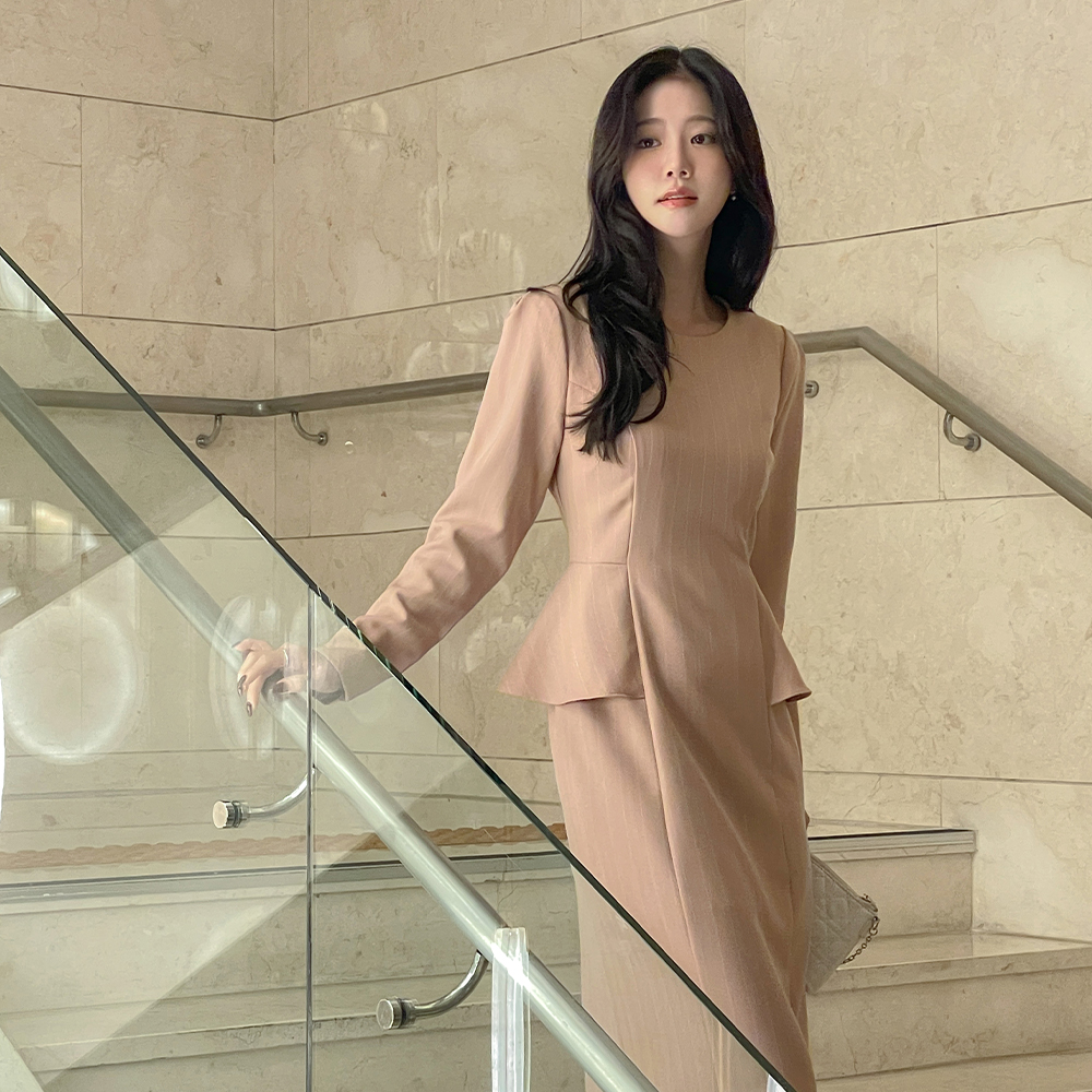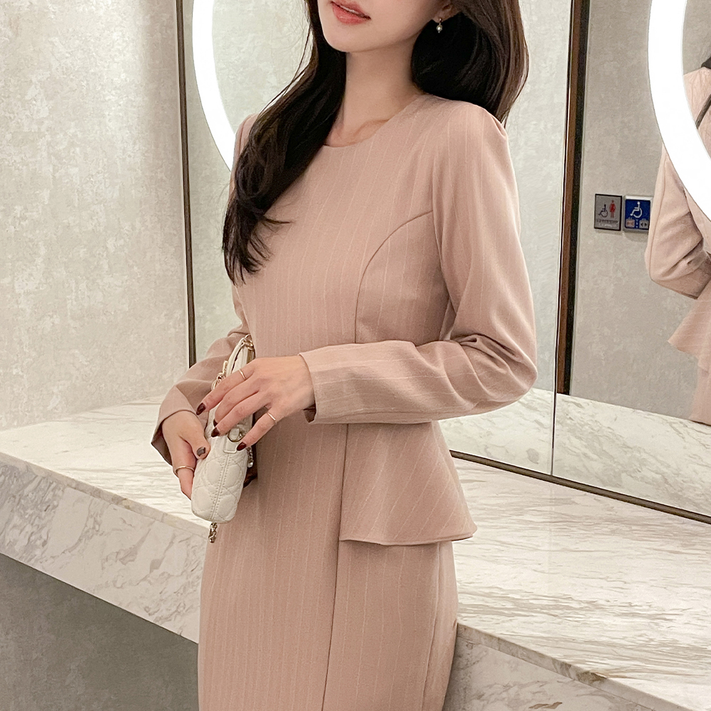 ペプラム スタイル ストライプ ワンピース