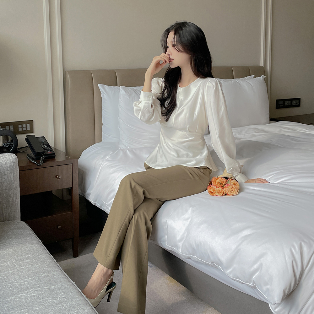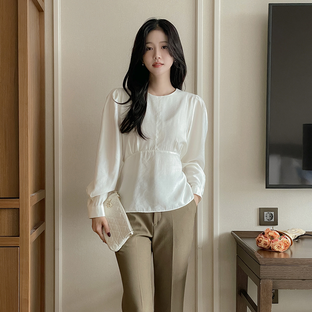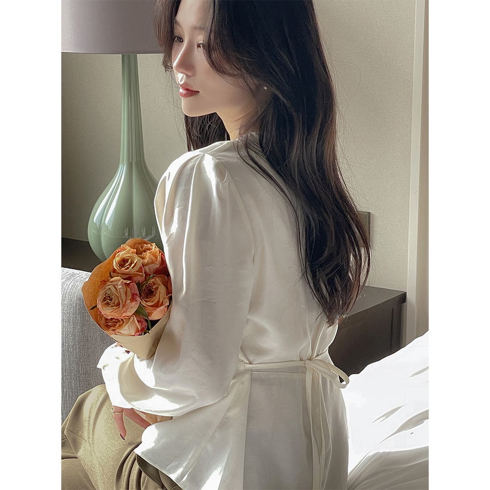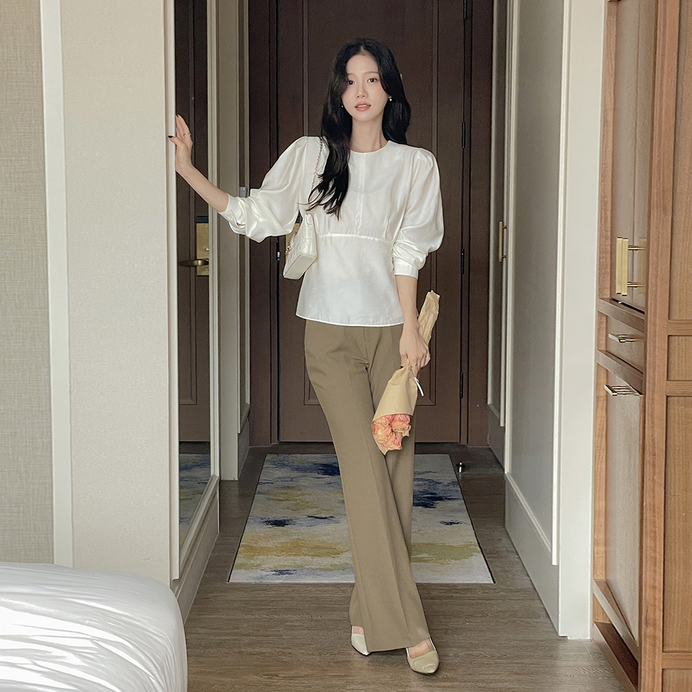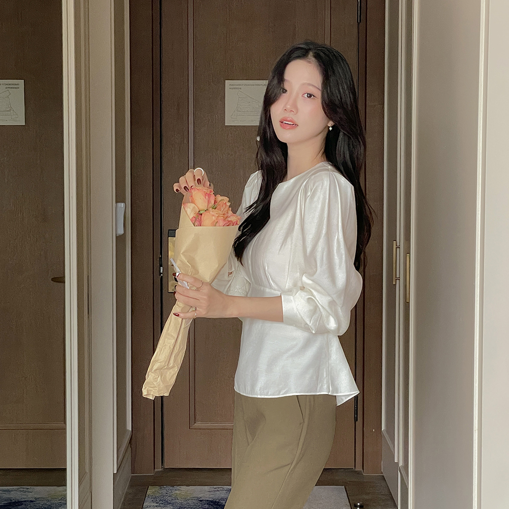 ペプラム バックリボン パフ ウール ブラウス
