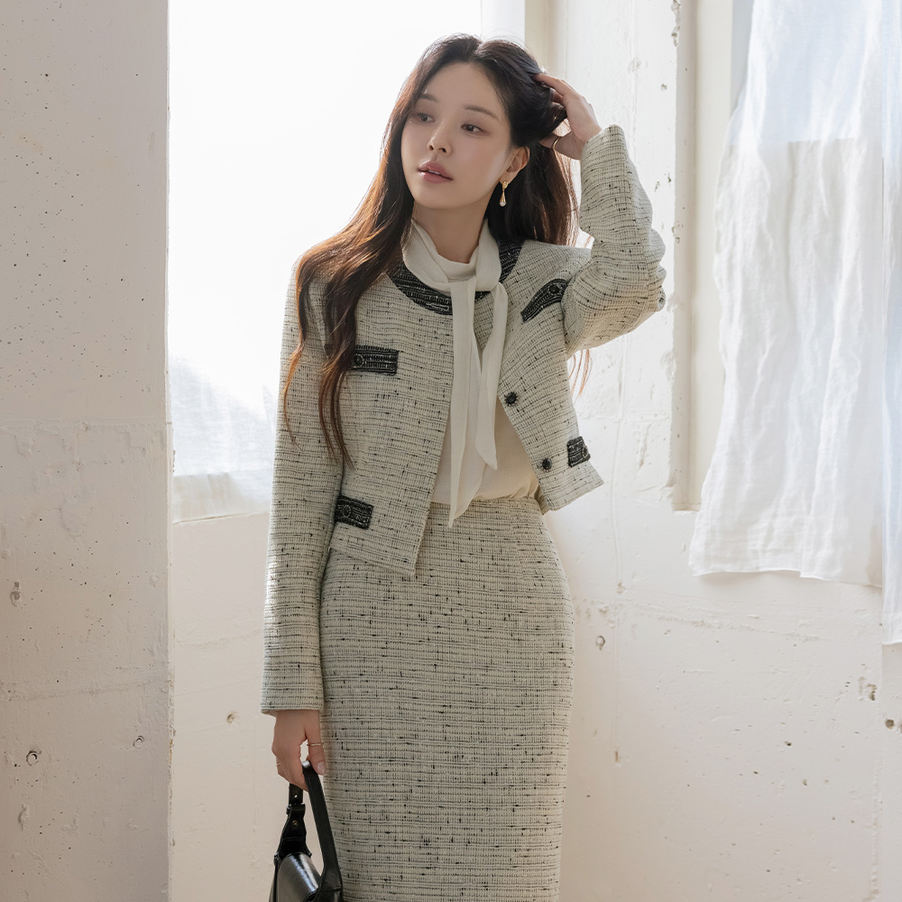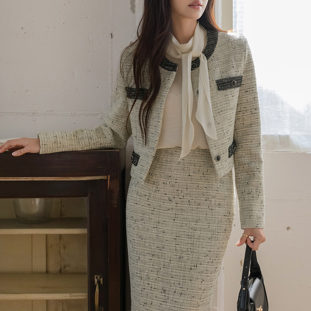 Merry 配色 ウール ツイード Set-up ジャケット