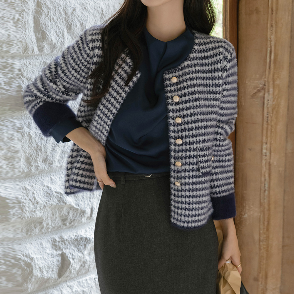 クラッシー ピンタックネック サテン ブラウス