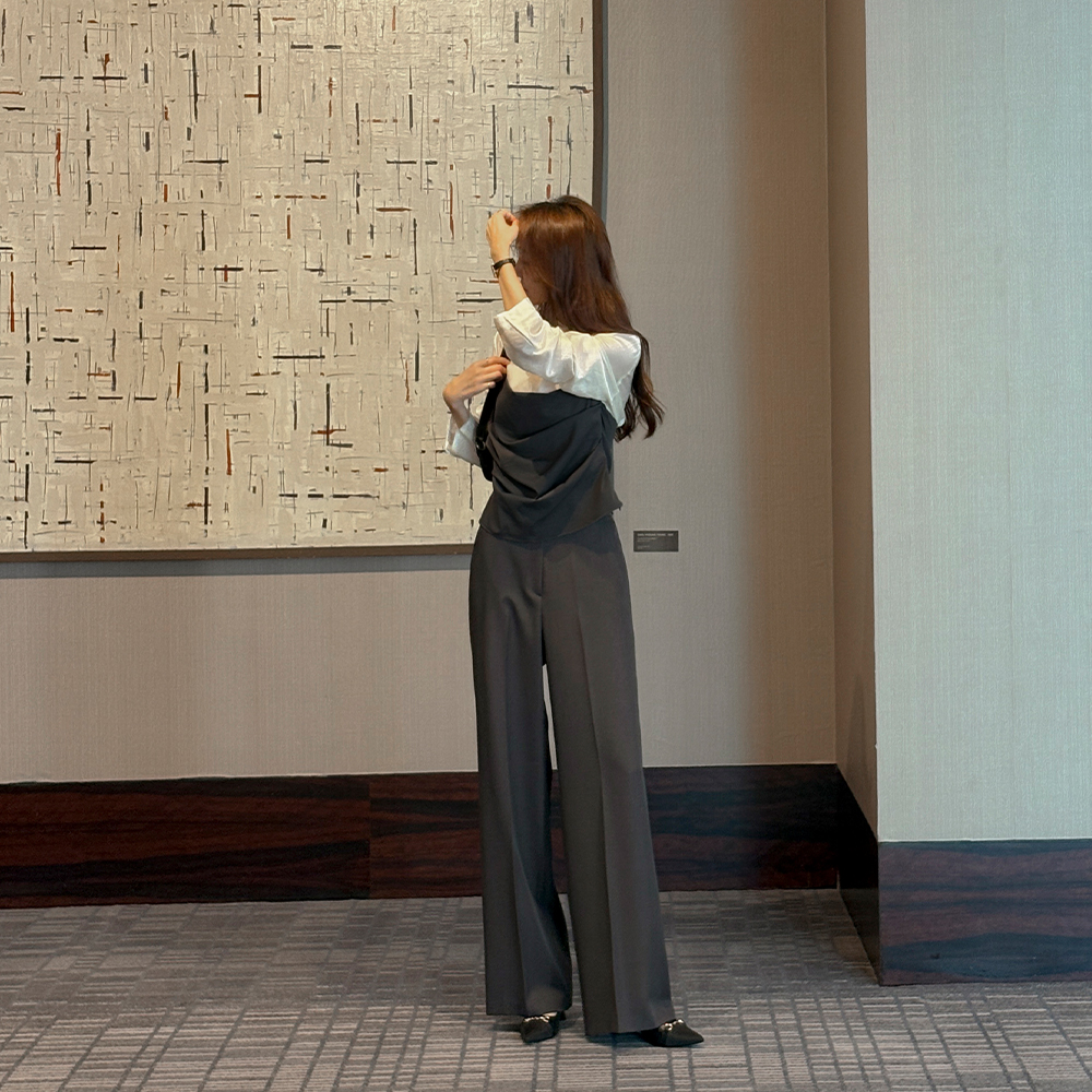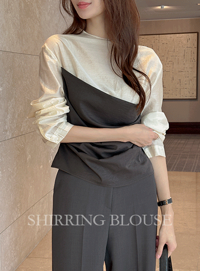 配色 アンバランス シャーリング ブラウス