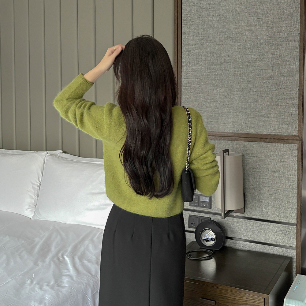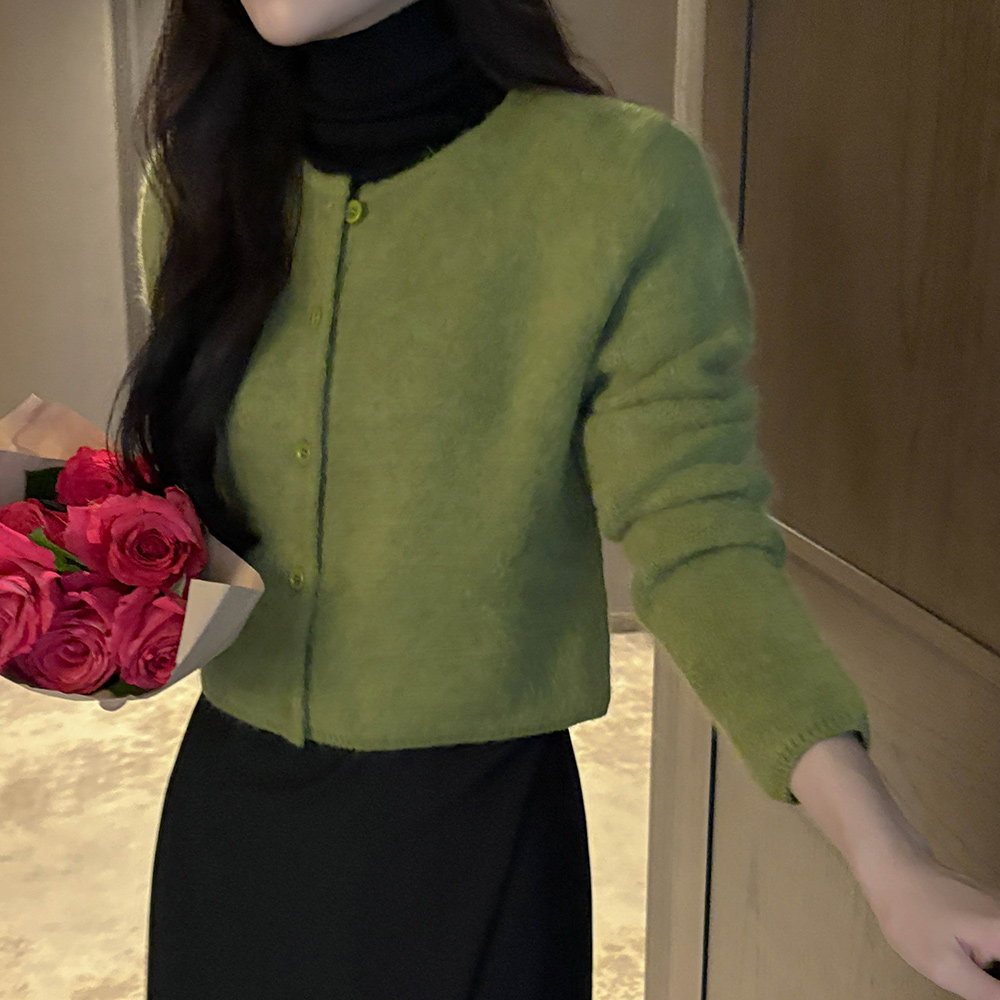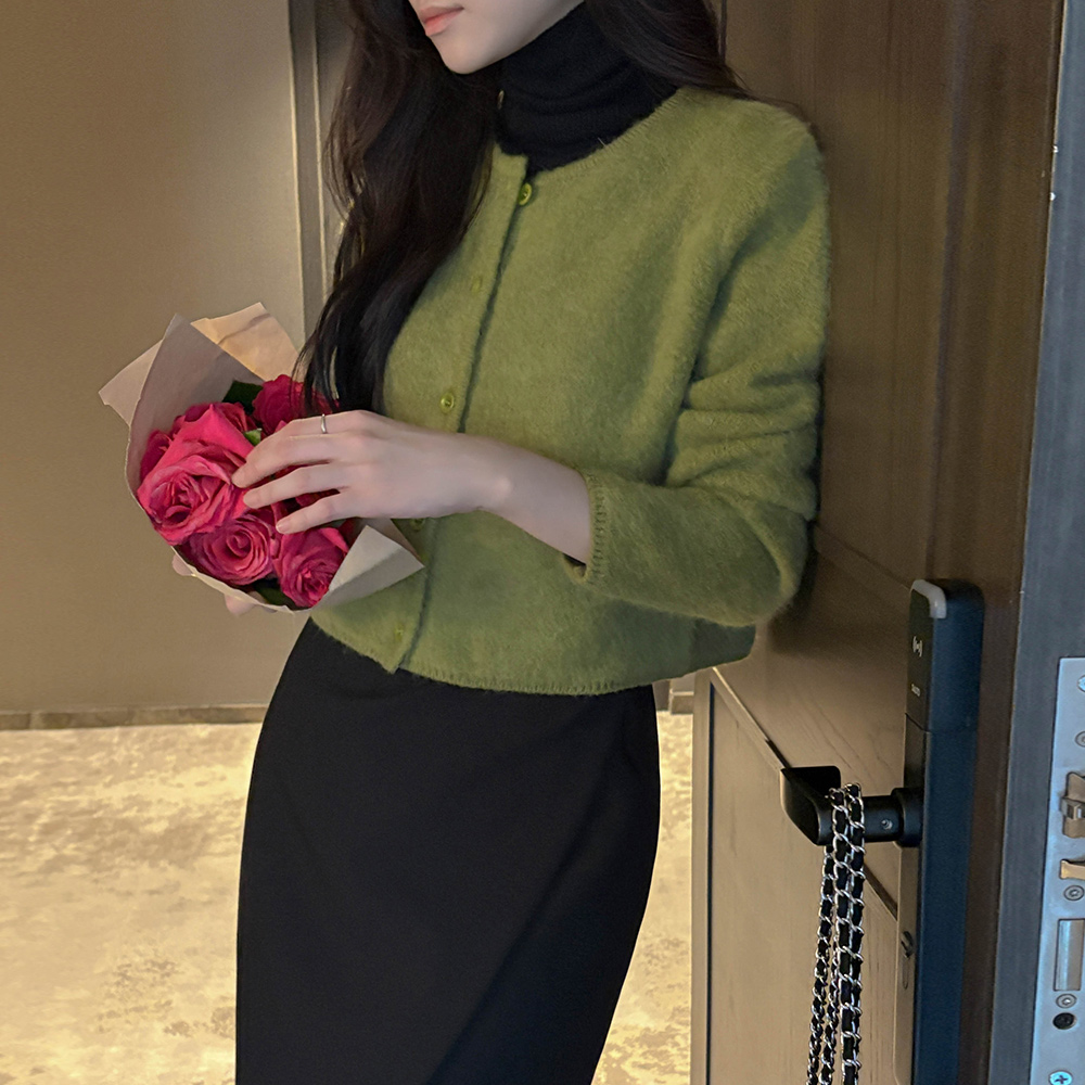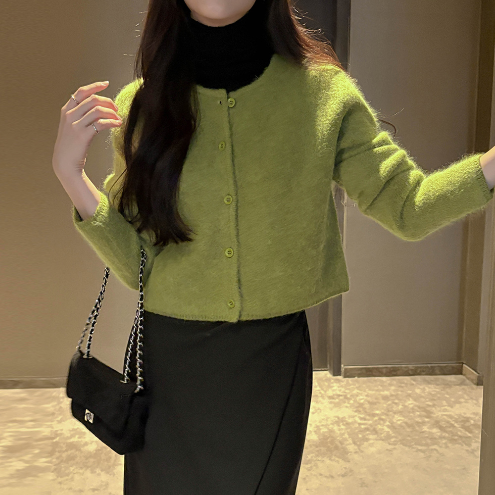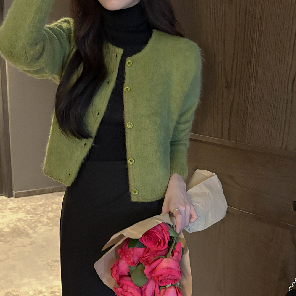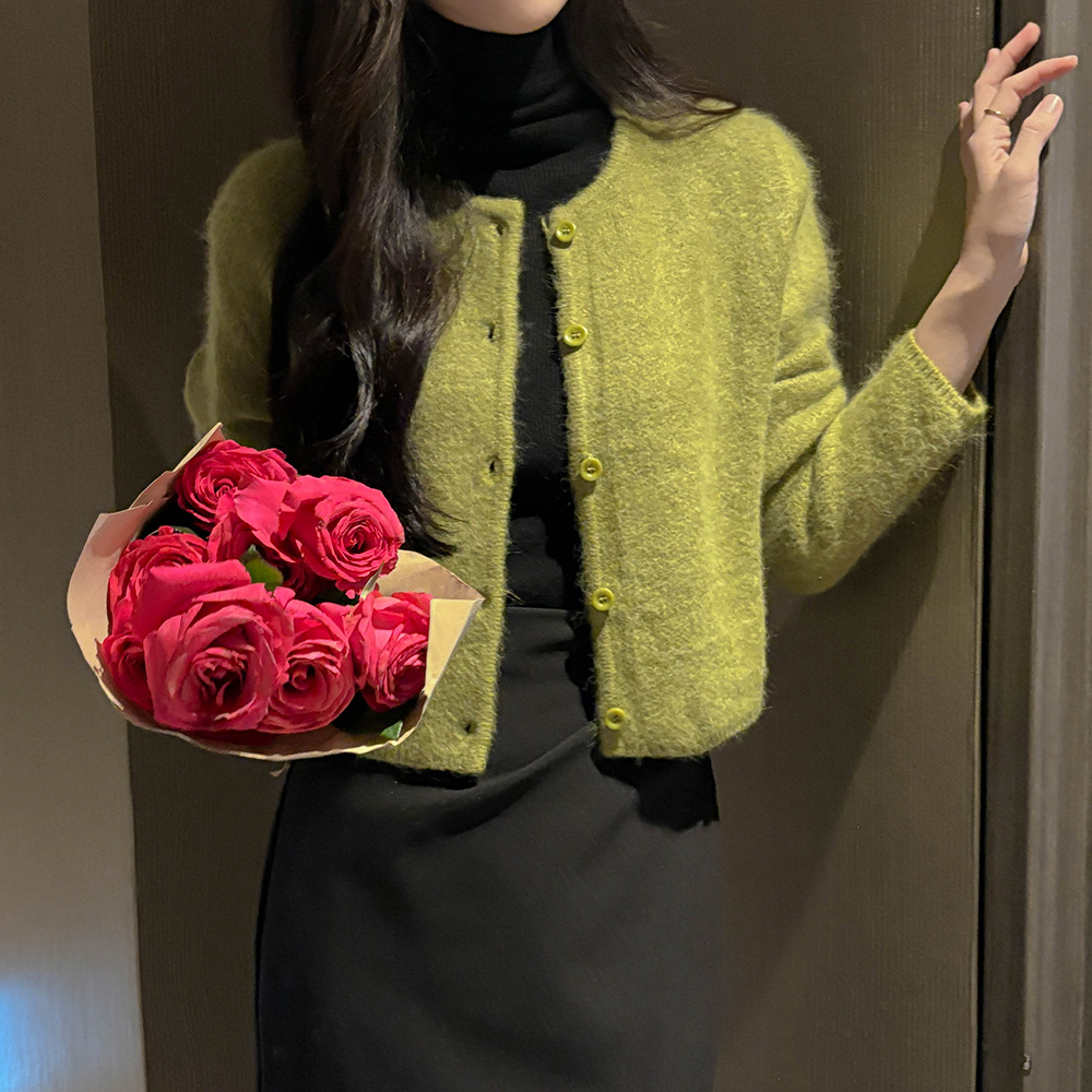 アンゴラ ふわふわ カラー ラウンドネック カーディガン