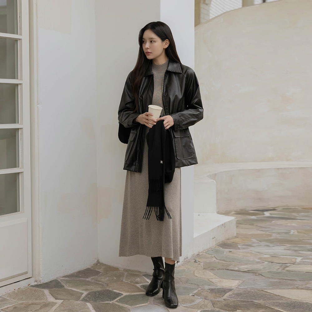 ハーフネック ナチュラル 適合 ウール ニット ロング ワンピース(+ベルト)