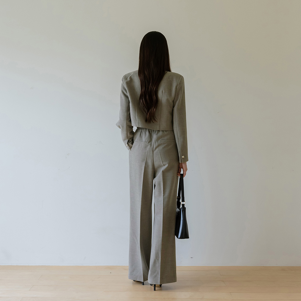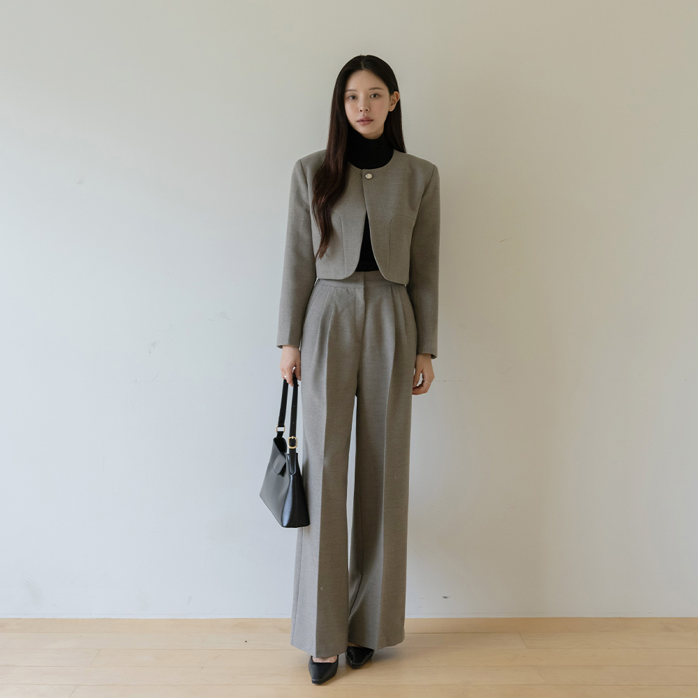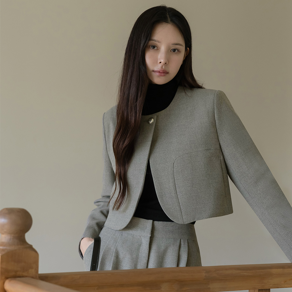 モダン ウール ワンボタン クロップド Set-up ジャケット