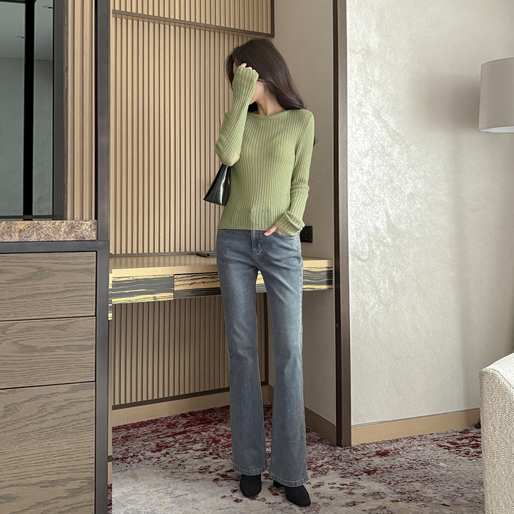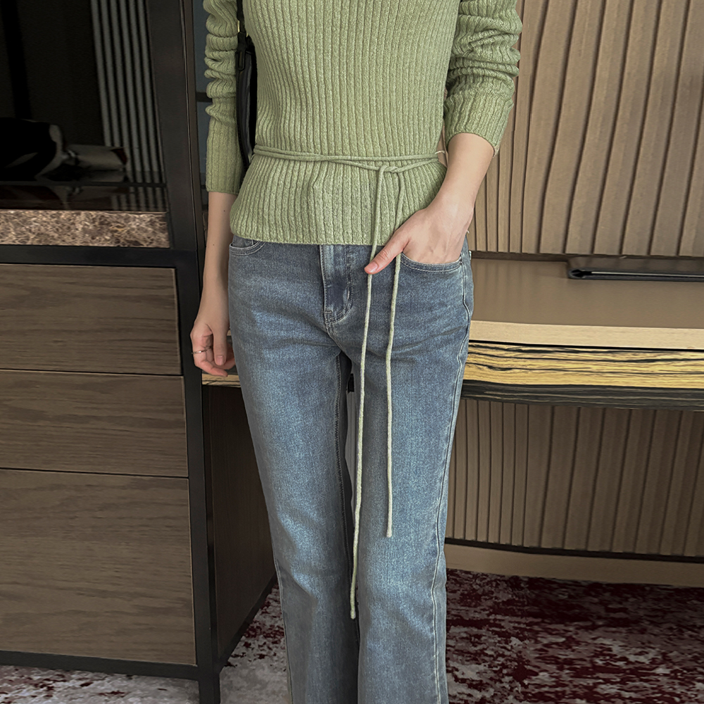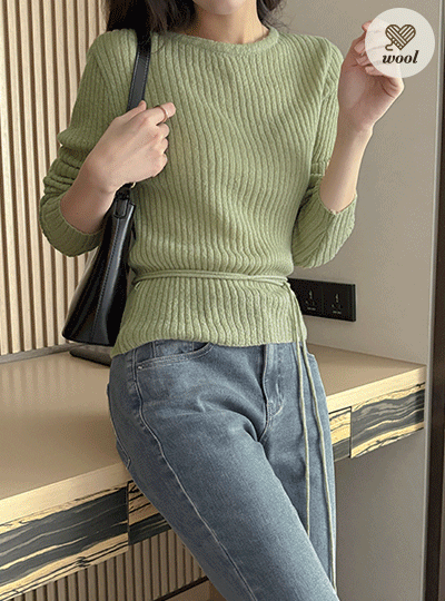 ソフト スリム ウール&モヘア コール天 ニット(+ベルト)