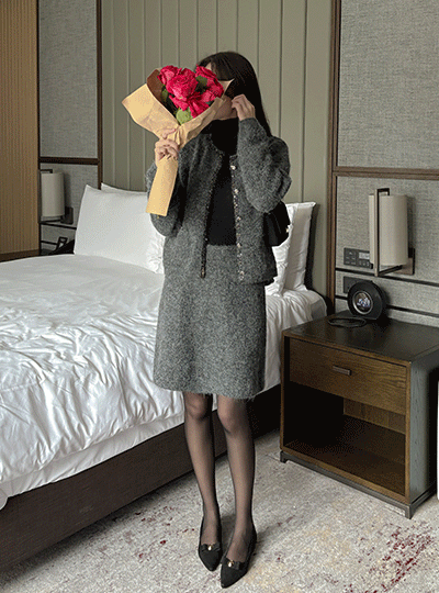 スパングル ポイント ウール カーディガン&スカート SET