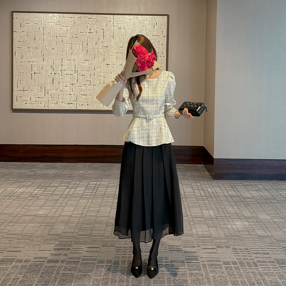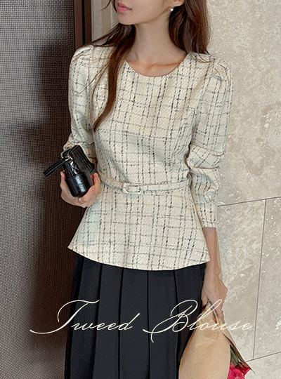 チェック ツイード ペプラム ブラウス(+ベルト)