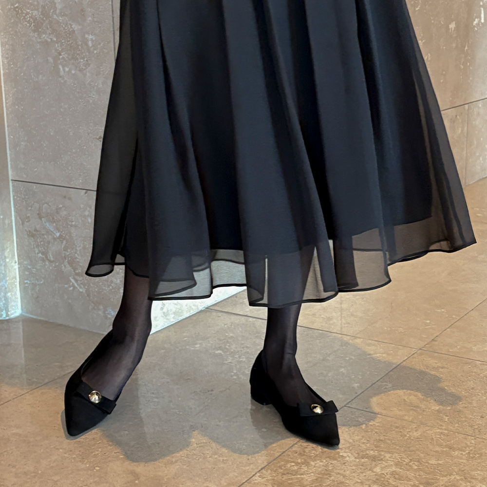ゴールド ボタン スエード フラットシューズ
