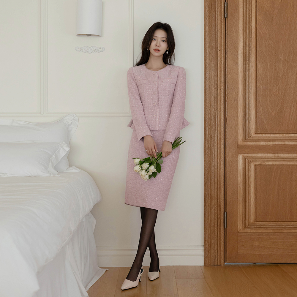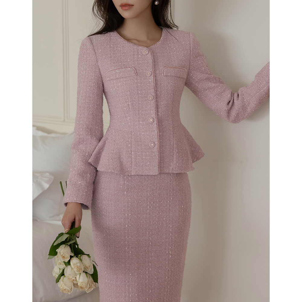 Eli ベルベット ウール ペプラム ツイード Set-up ジャケット