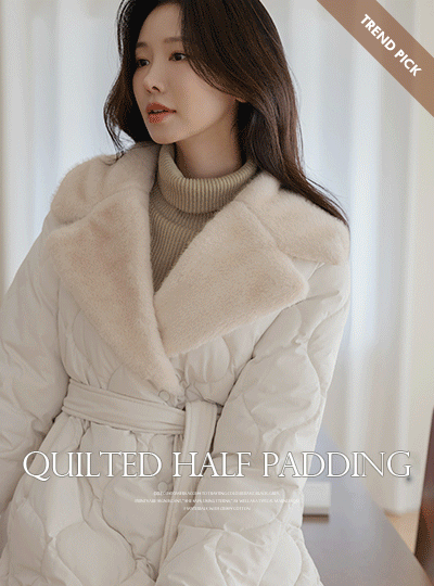 ファー カラーネック 人造ダウン キルティング ハーフ バディング(+ベルト)