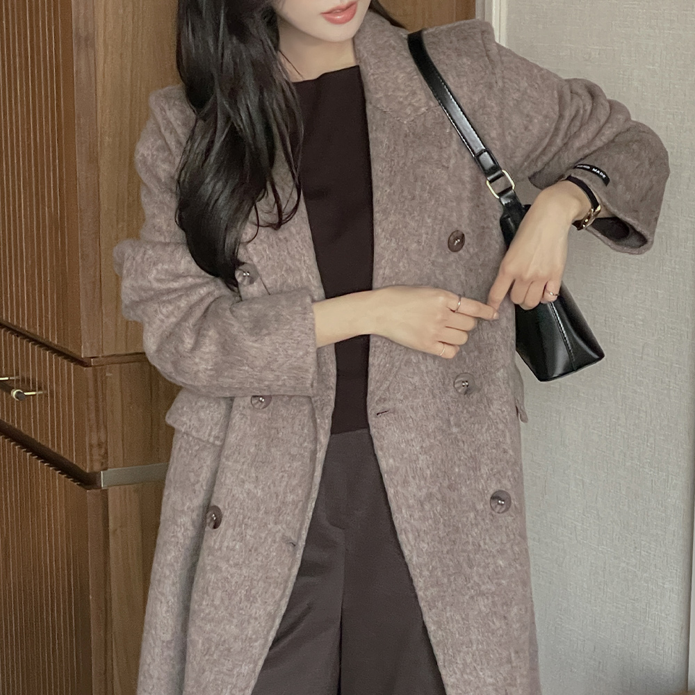 テーラードカラー ダブル ボタン ウール ハンドメード コート