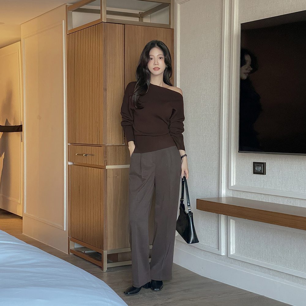 ツーウエー ショルダー アンバランス ウール ニット