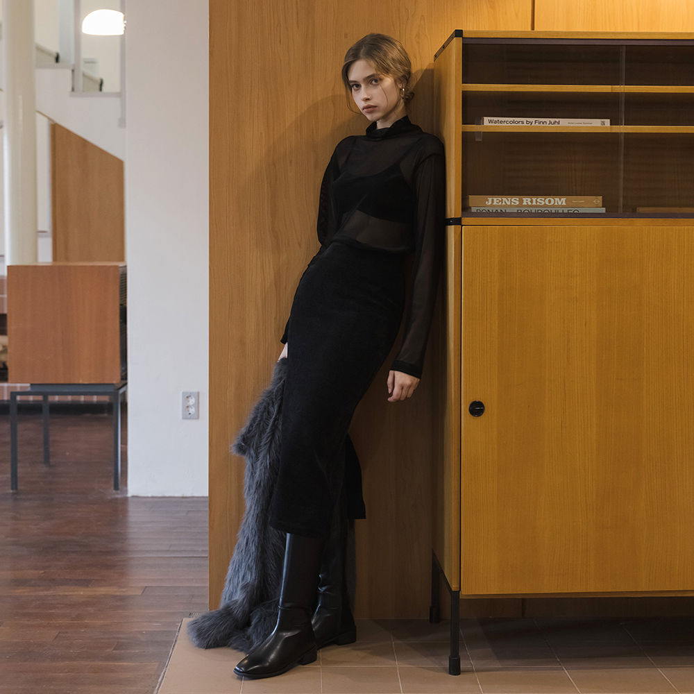 ベルベット Hライン 弾力 ロング スカート