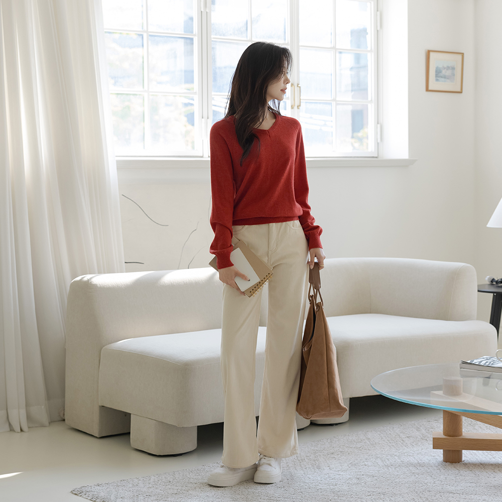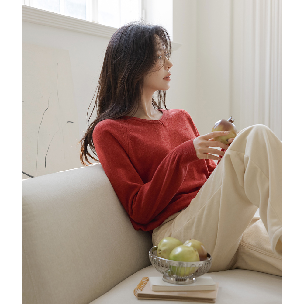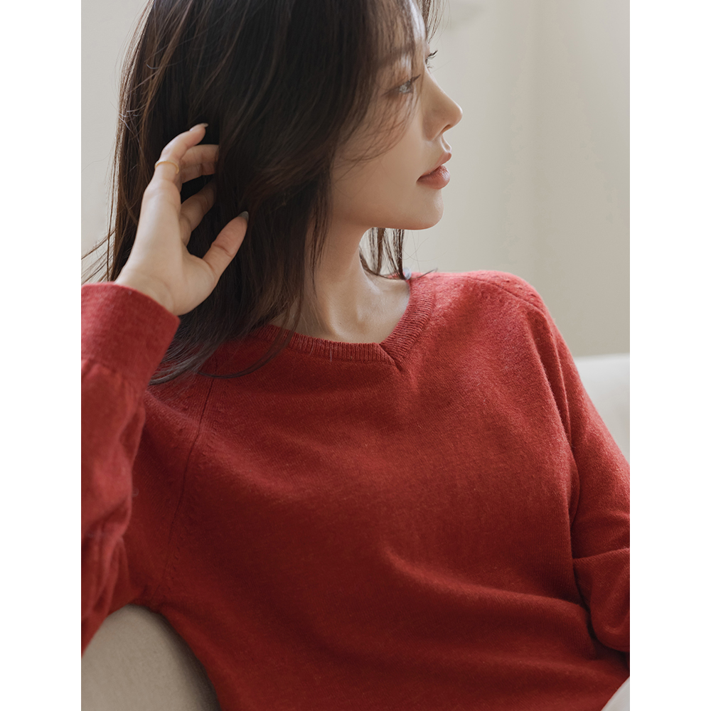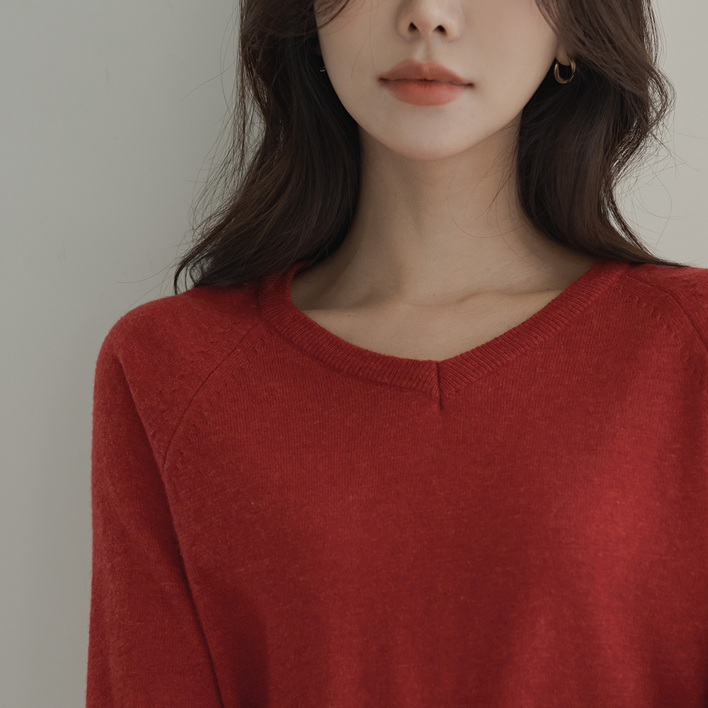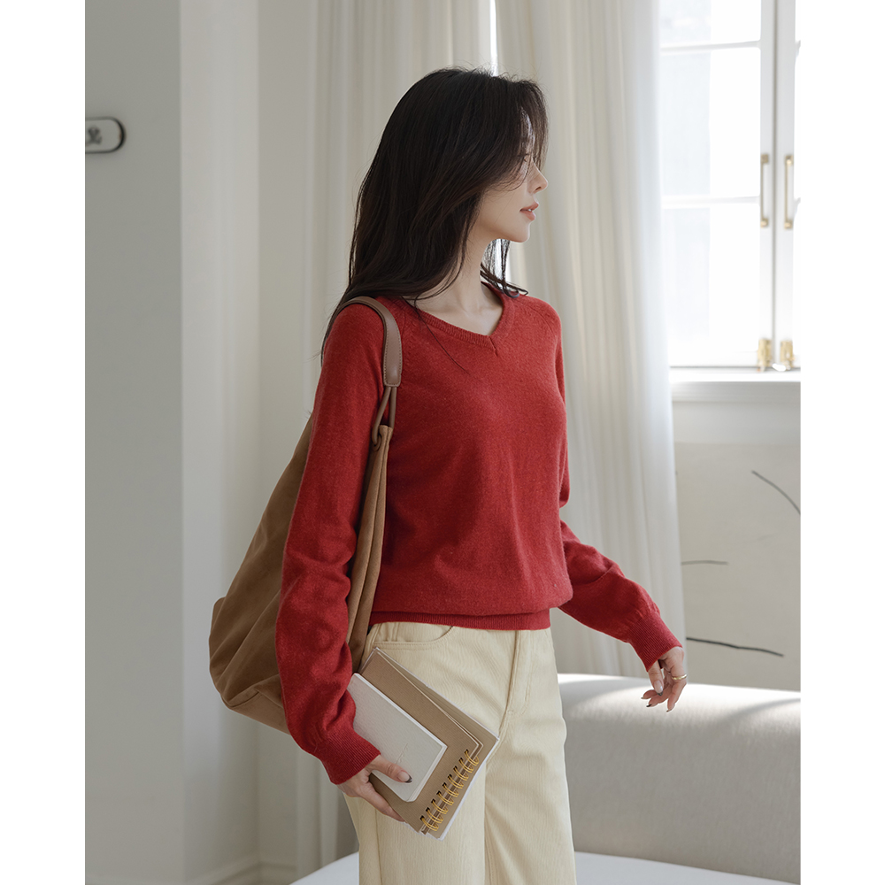 ブイネック ソリッド ラムウール ラグラン ニット