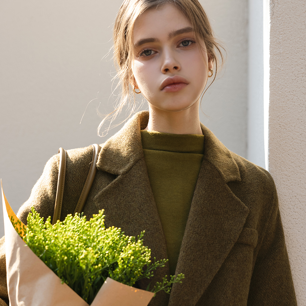 ウール100% ヘリンボーン ハンドメード ロング コート