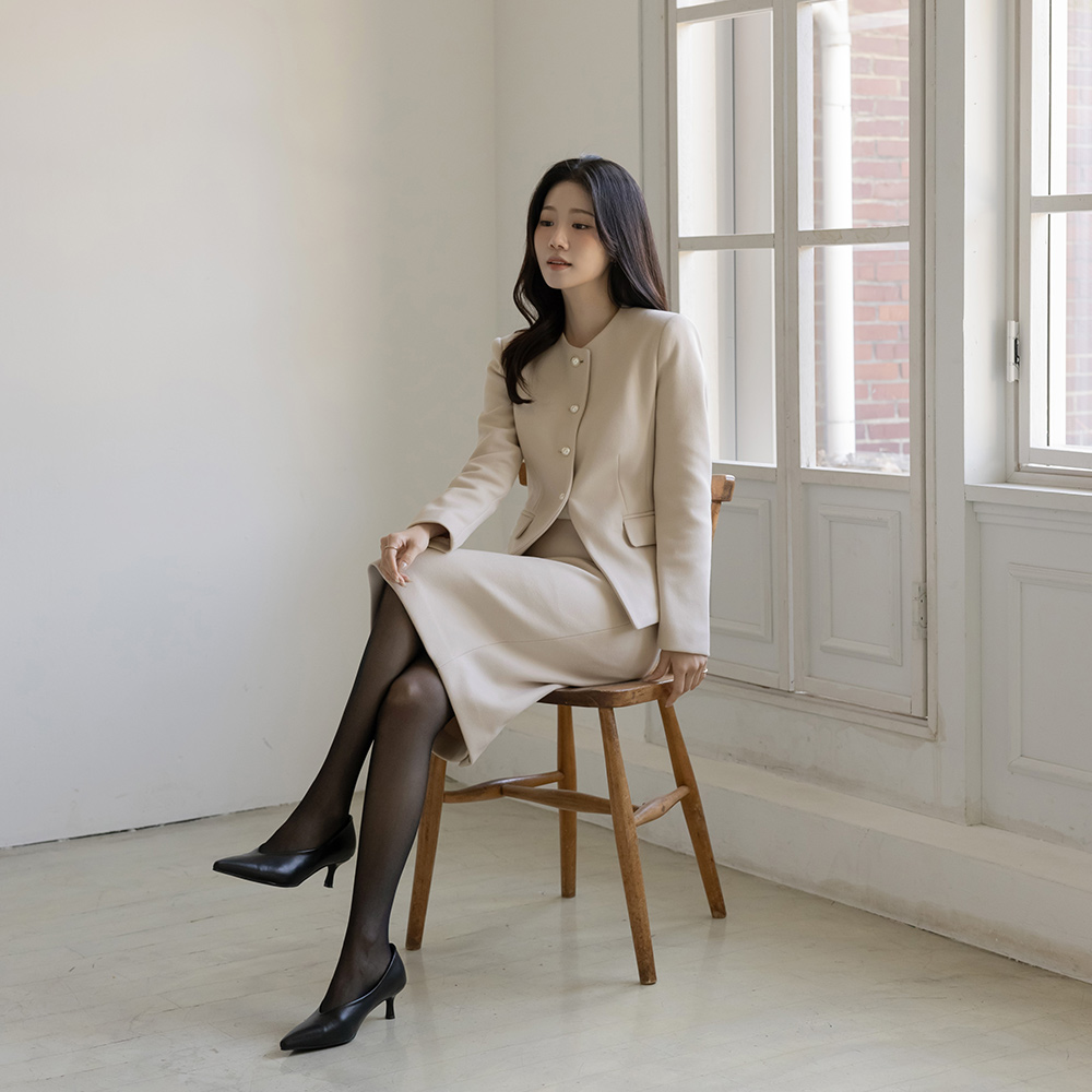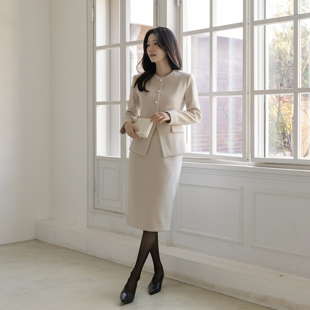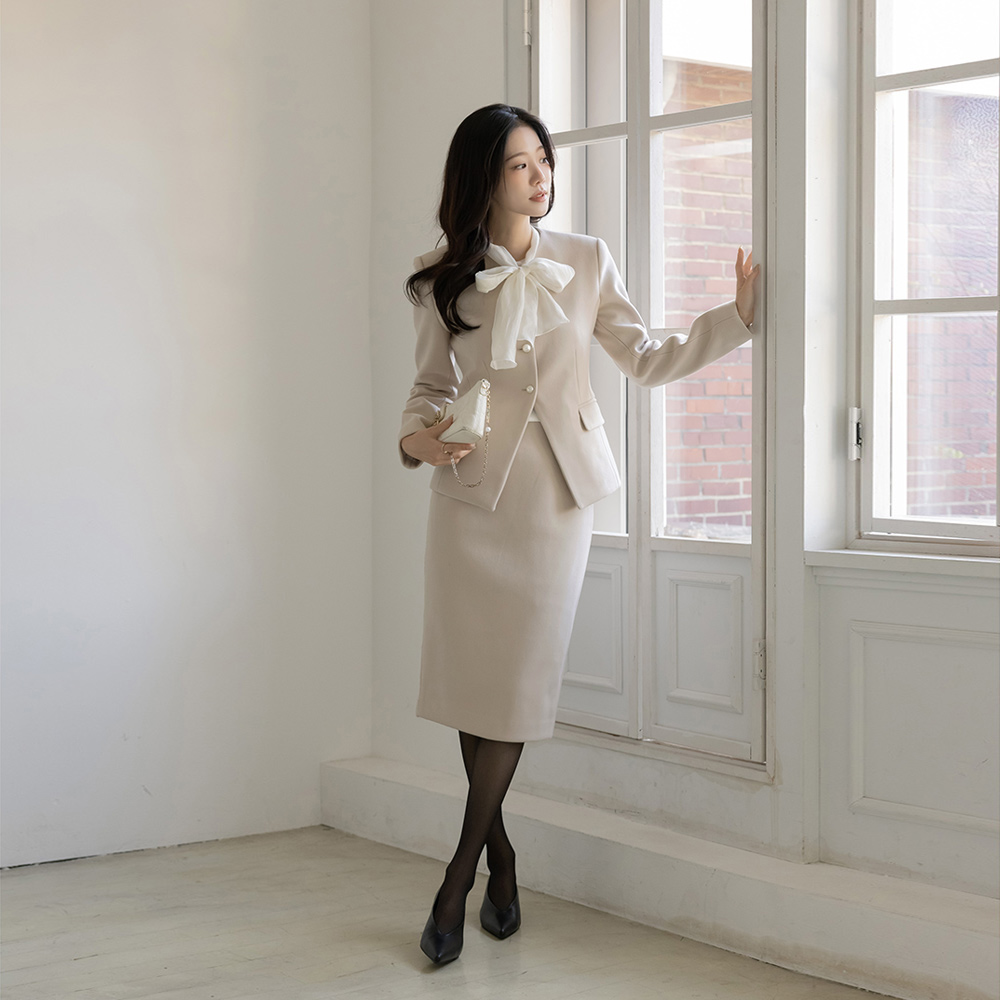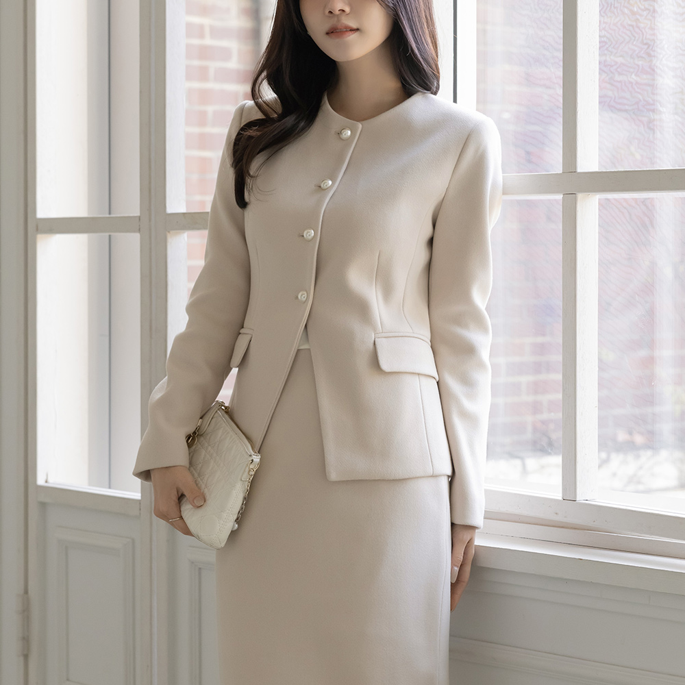 フェミニン 真珠 ボタン Set-up ジャケット(+タイ)